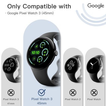 JETech Case with Screen Protector for Google Pixel Watch 3 (2024) 45mm, Built-in 9H Tempered Glass Film Hard PC Bumper Full Coverage Protective Cover, 2-Pack