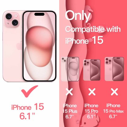 JETech Cute Case for iPhone 15 6.1-Inch, Wave Frame Curly Shape Shockproof Phone Cover for Women and Girls, Clear Hard PC Back