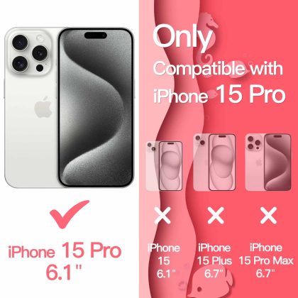 JETech Cute Case for iPhone 15 Pro 6.1-Inch, Wave Frame Curly Shape Shockproof Phone Cover for Women and Girls, Clear Hard PC Back