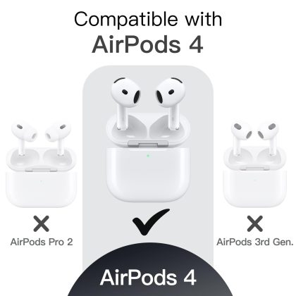 JETech Upgraded Silicone Case Cover for AirPods 4th Generation (2024) with Keychain, Hard PC Interior, Shockproof Protective Skin Shell, Front LED Visible