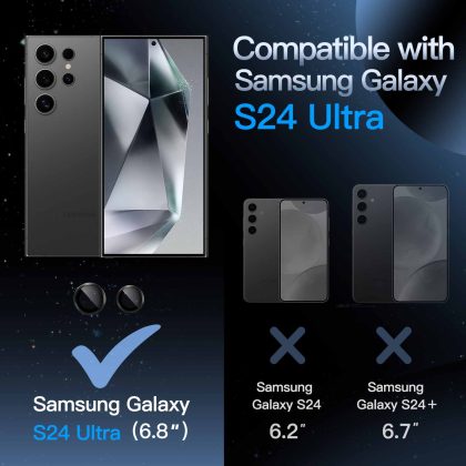 JETech Camera Lens Protector for Samsung Galaxy S24 Ultra, 9H Tempered Glass Metal Individual Ring Cover, Easy Installation Tray, HD Clear, 1 Set