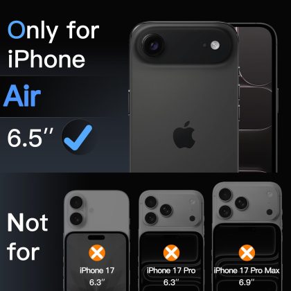 JETech Camera Lens Protector for iPhone 17 Air, Full Coverage 9H Tempered Glass Ring Cover, Matte Metal Plate, Case Friendly, 1-Pack, 6.5-Inch Display