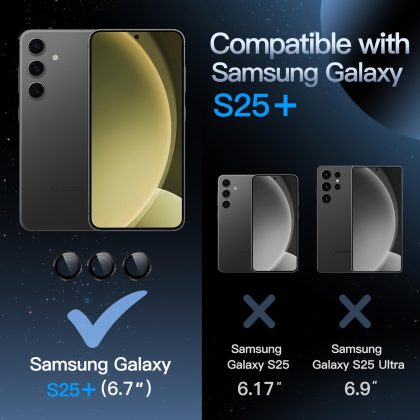 JETech Camera Lens Protector for Samsung Galaxy S25 / S25 Plus 5G, 9H Tempered Glass Metal Individual Ring Cover, Easy Installation Tray, HD Clear, 1 Set
