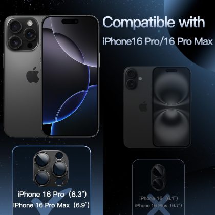 JETech Camera Lens Protector for iPhone 16 Pro 6.3-Inch and iPhone 16 Pro Max 6.9-Inch, Full Coverage 9H Tempered Glass Ring Cover, Matte Metal Plate, Case Friendly, 1-Pack