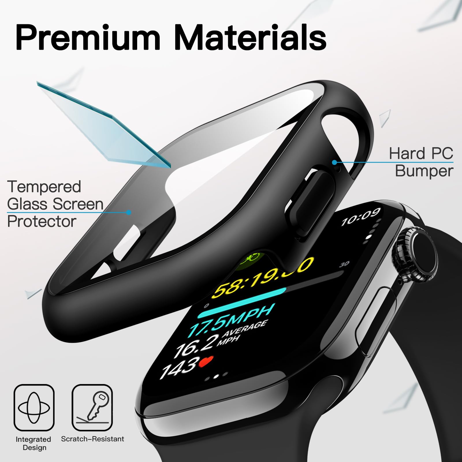 • [High Protection] Integrated with hard PC bumper and 9H hardness tempered glass film, the case fully covers the entire front and curved edges of your watch, providing enhanced protection against daily drops and scratches