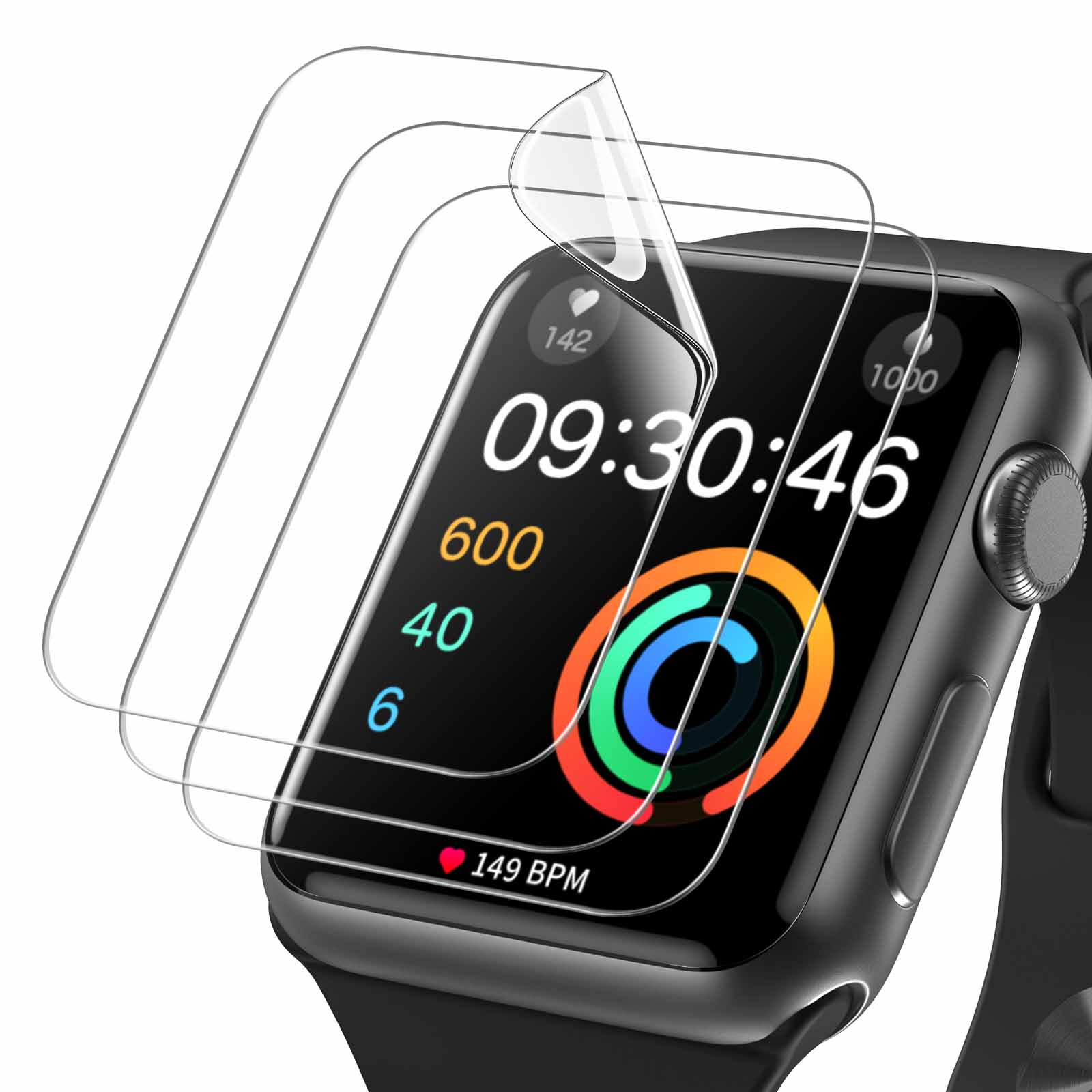 JETech Screen Protector for Apple Watch Series 3/2/1 38mm, Flexible TPU Film, Anti-Scratch HD Clear, 3-Pack