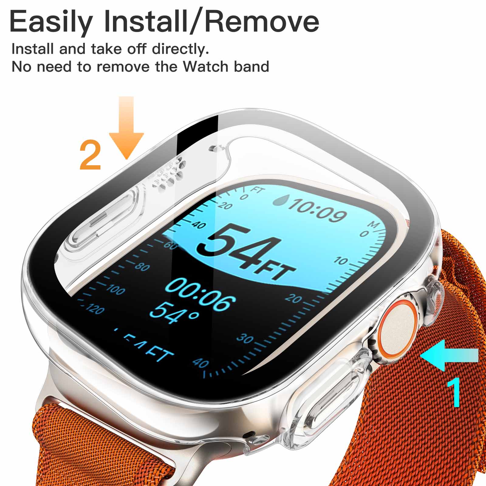 [Effortless Installation] With a snap-on design, you can install the protective case with screen protector directly to your Watch without taking off the watch band