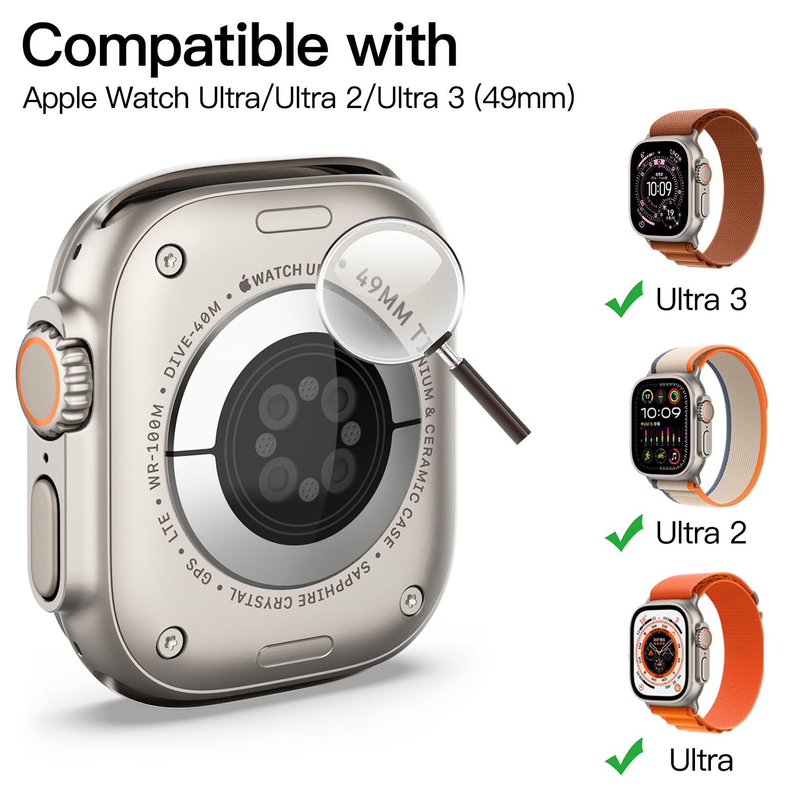 [Perfect Fit] Compatible with Apple Watch Ultra 3/2/1 49mm. Please check the back bottom of your device to find the Watch Model. Precise cutouts allow you to access all features and buttons easily