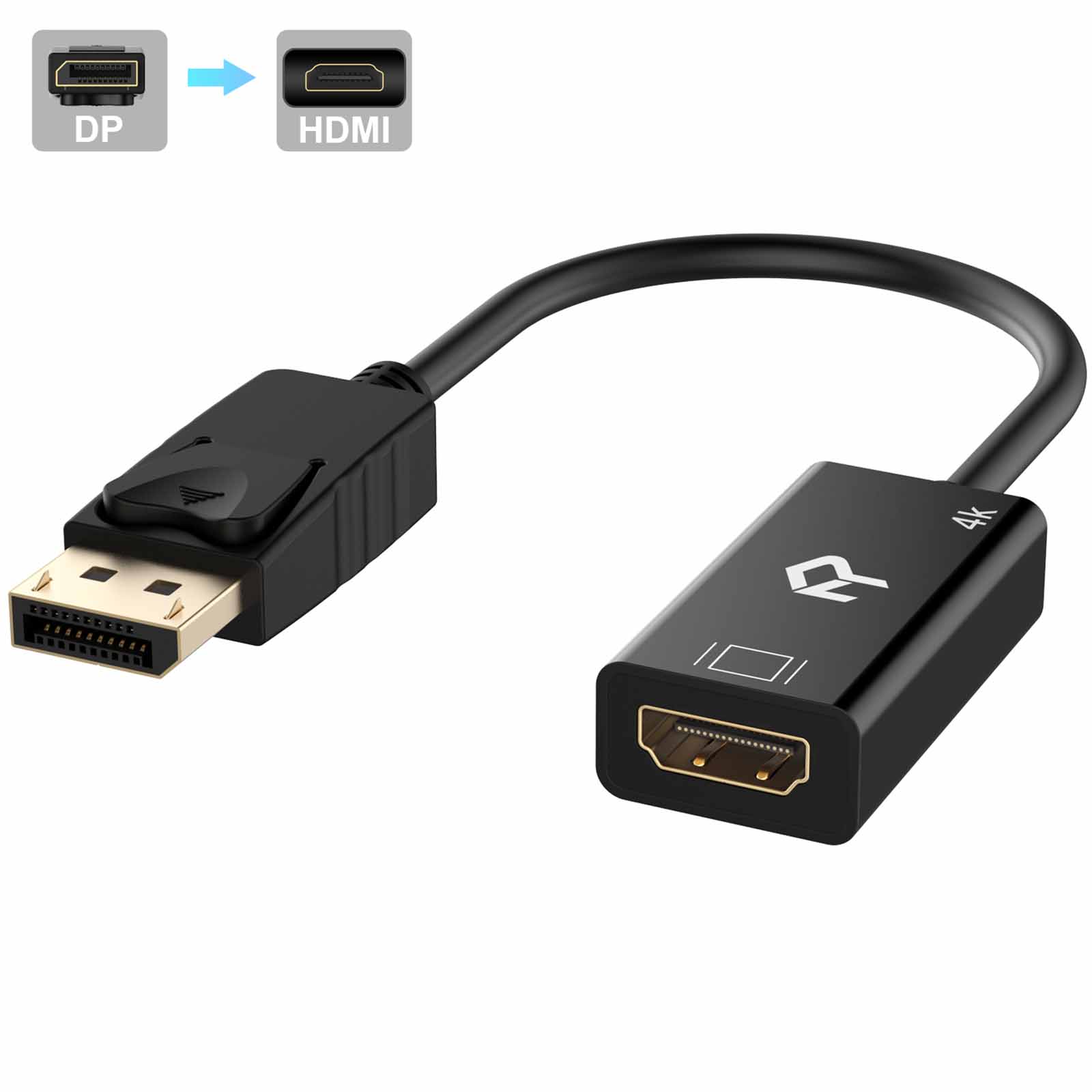 Rankie DisplayPort (DP) to HDMI Adapter, 4K Resolution Ready Converter with Audio (Black)
