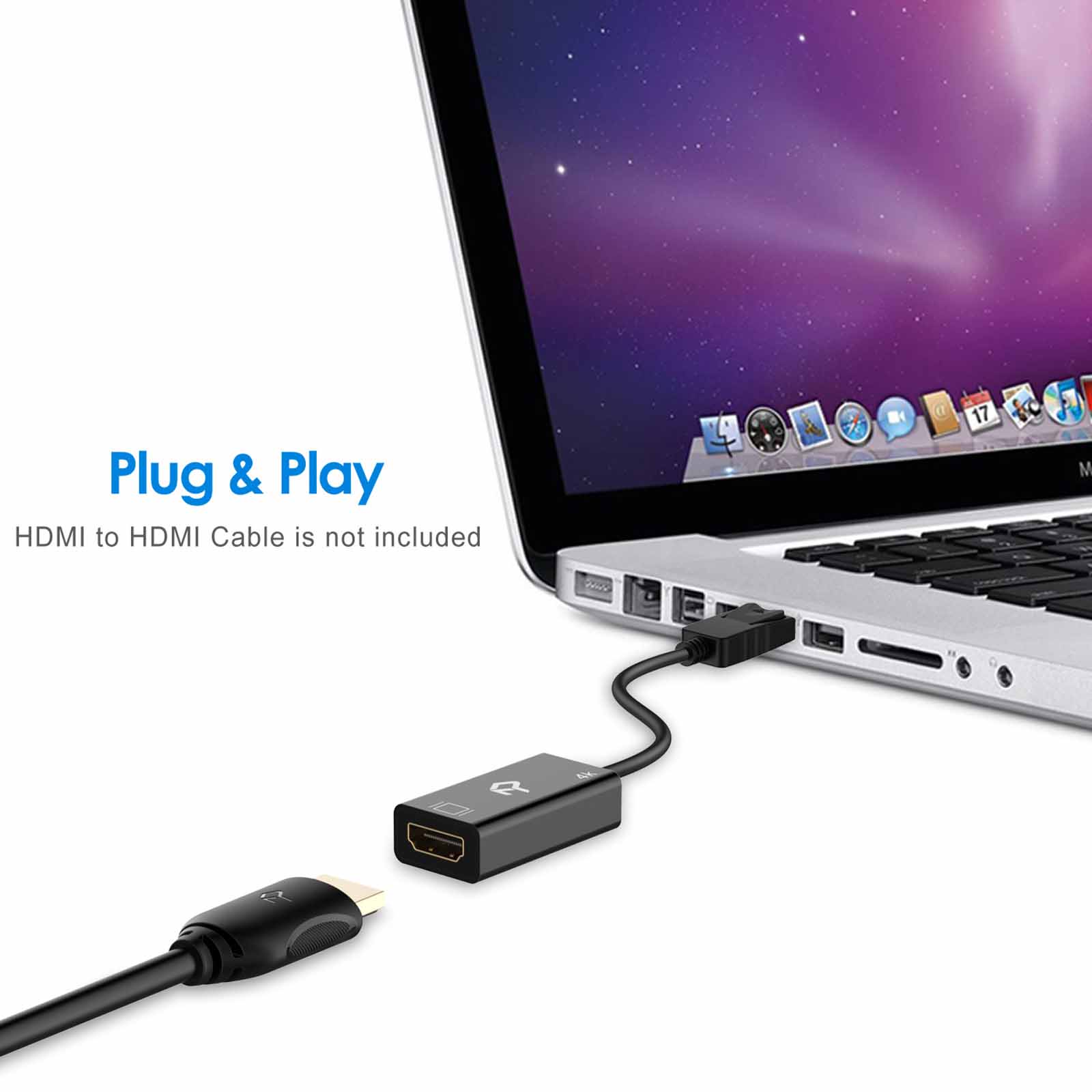 Note: for some compatible device, it might take a few seconds for the video to display. Portable adapter connects a DisplayPort (DP, DP , DisplayPort ) equipped laptop or desktop to an HDTV, monitor, or projector with HDMI input; An HDMI cable (sold separately) is required