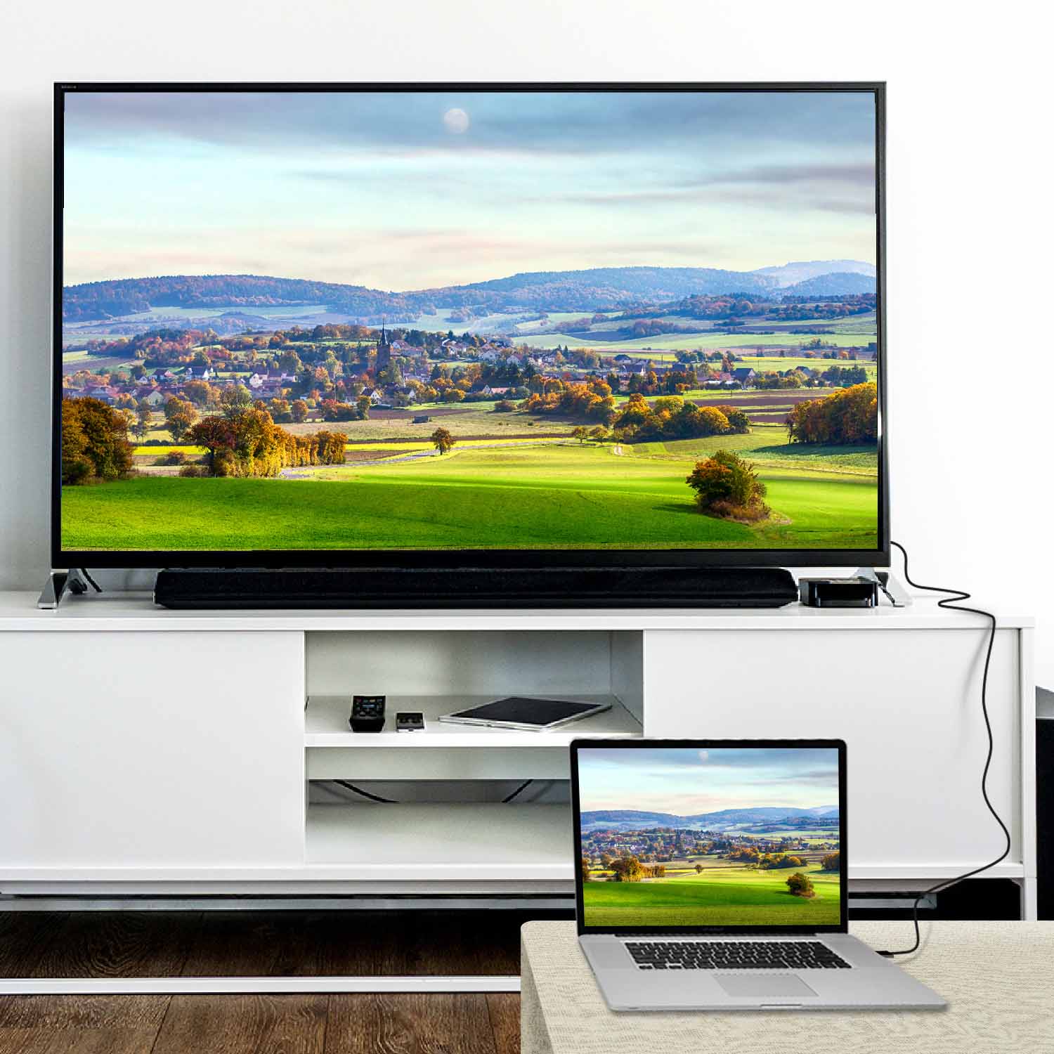 Bought this Display Port –> HDMI cable to connect a PC to a 55-inch TV. This cable worked for my setup. unlike another brand. which I had to return. Apparently not all Display Port –> HDMI cables are the same.
