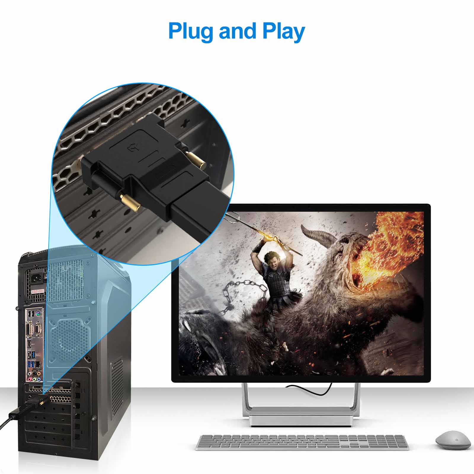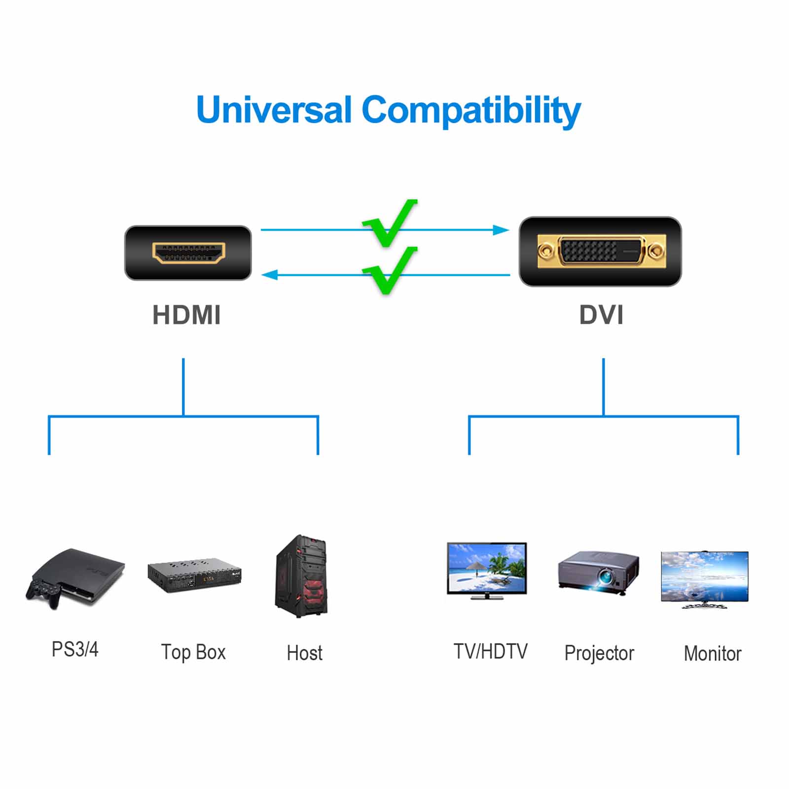 • Does not support 144Hz. The bi-directional HDMI-DVI adapter is a great solution for connecting from a computer with DVI port to a monitor, HDTV, or projector with HDMI port, or from a computer, Blu-ray player, TV box, or game console with HDMI port to a monitor with DVI port. An HDMI cable (sold separately) is required