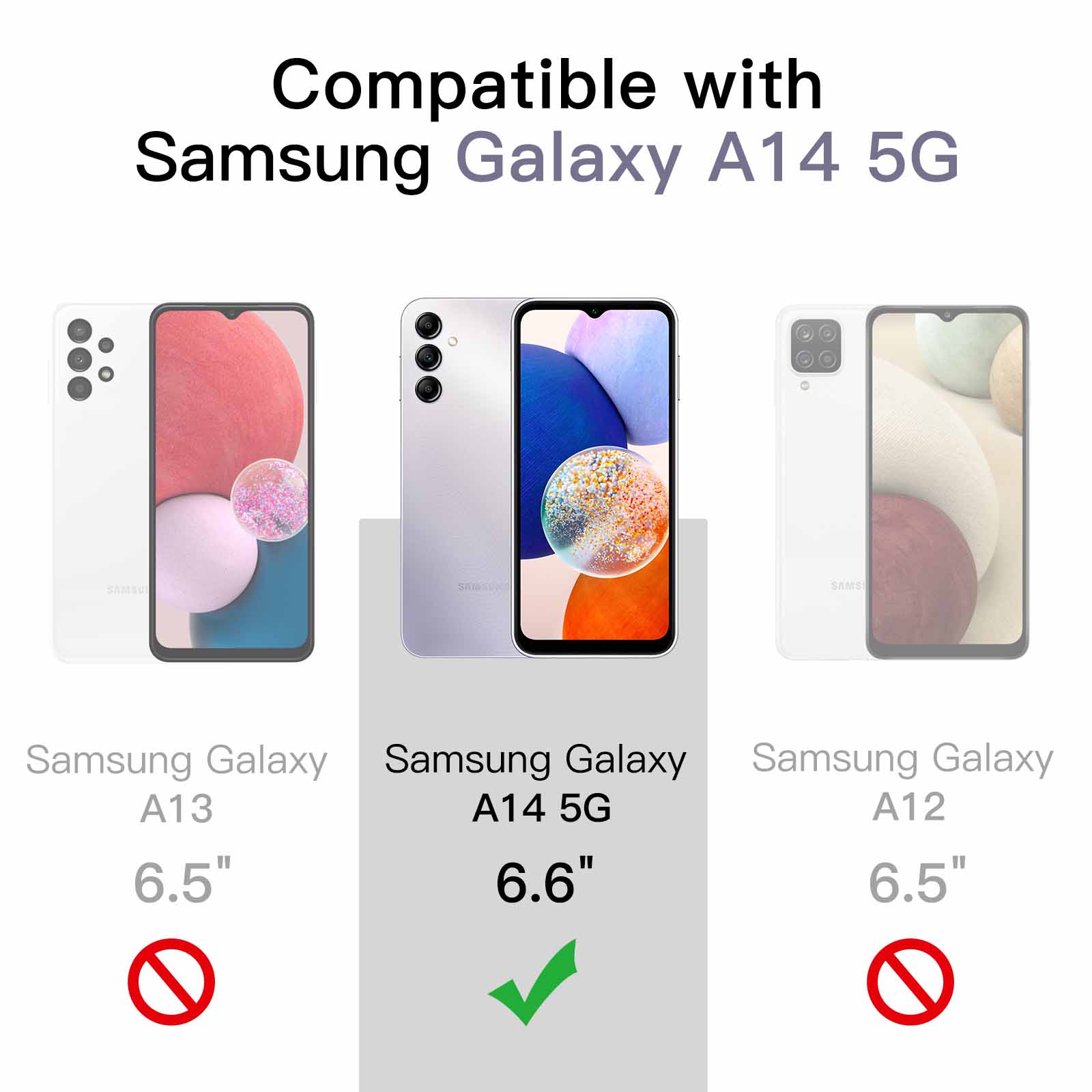 [2-in-1 High Protection] Tailor-made for Samsung Galaxy A14 5G 6.6-inch. You will receive a protective clear case and 2-pack tempered glass screen protectors, bringing comprehensive protection to your device
