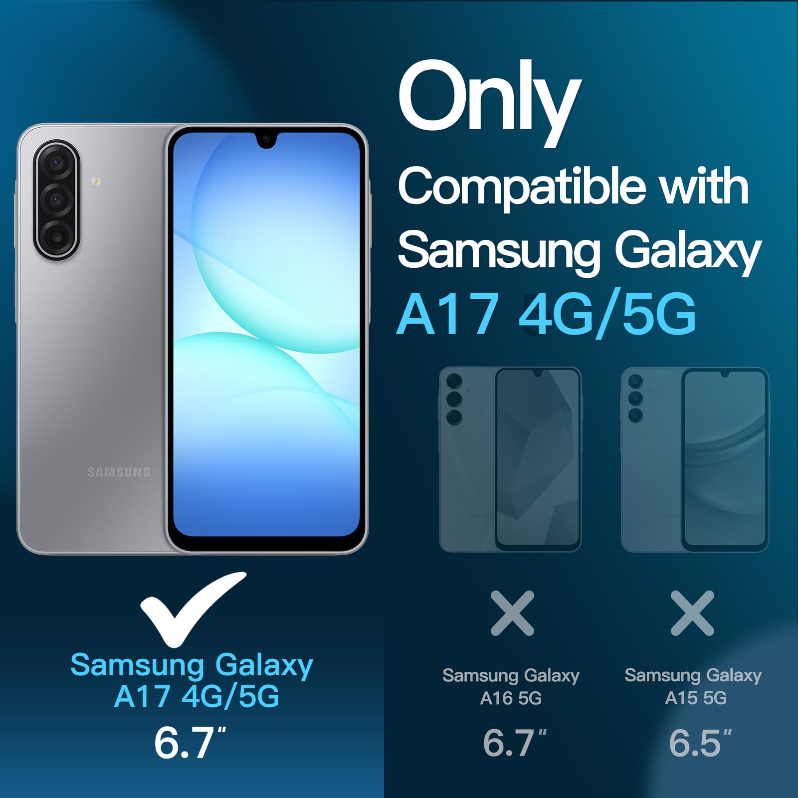 • [Compatibility] Designed for Samsung Galaxy A17 5G/4G 6.7-inch for great protection. NOTE: Not for Samsung Galaxy A16. Please kindly check your device model before purchasing. Designed with thoughtful 2.5D curved edges, compatible with most phone cases