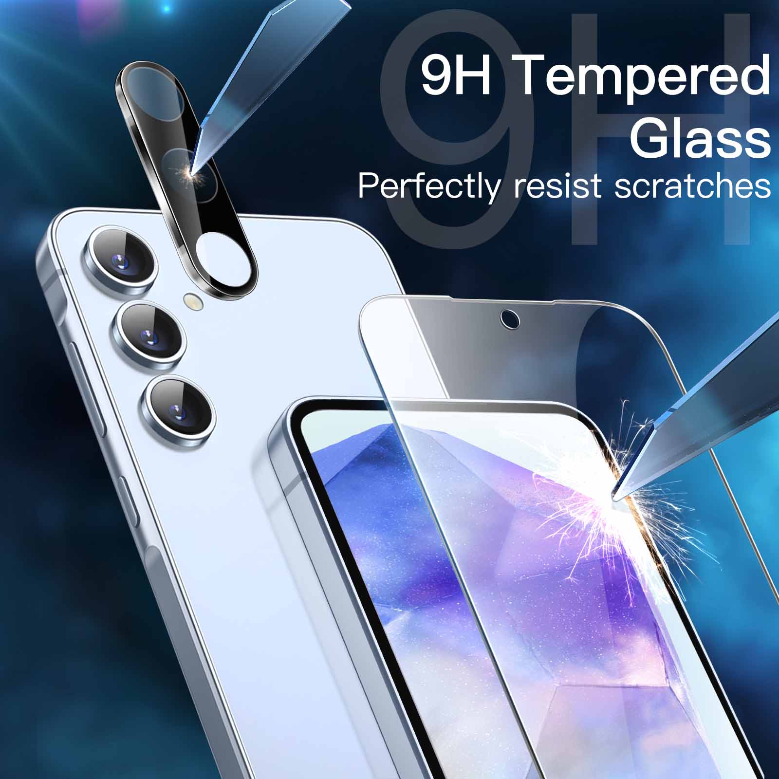 [Trustworthy Protection] The 9H hardness tempered glass (harder than a knife) protects your screen and camera lens from daily scratches and abrasions