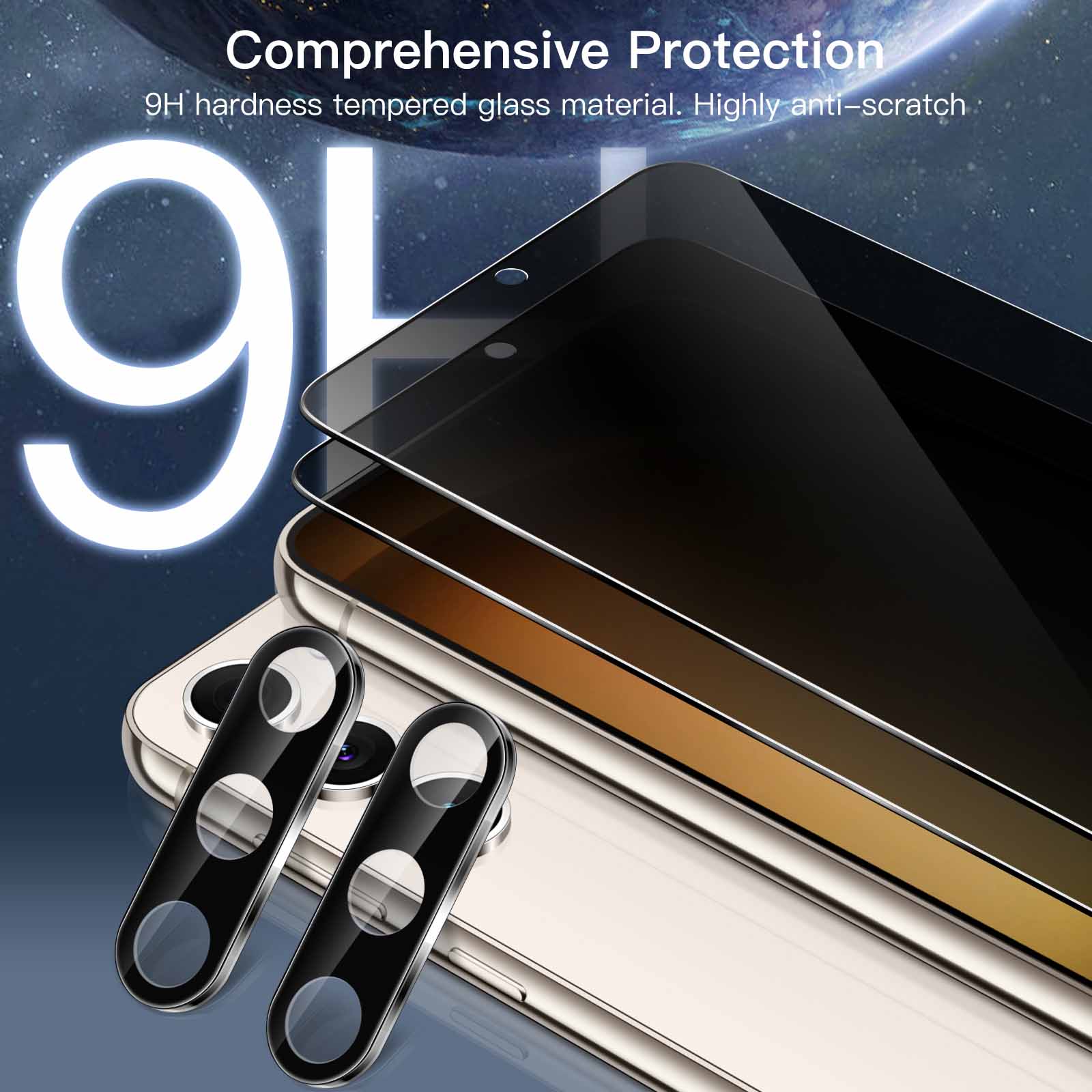 [Premium Material] Both the screen protector and camera lens protector are made of tempered glass. Protect your screen and camera lens effectively from daily scratches, bumps or drops
