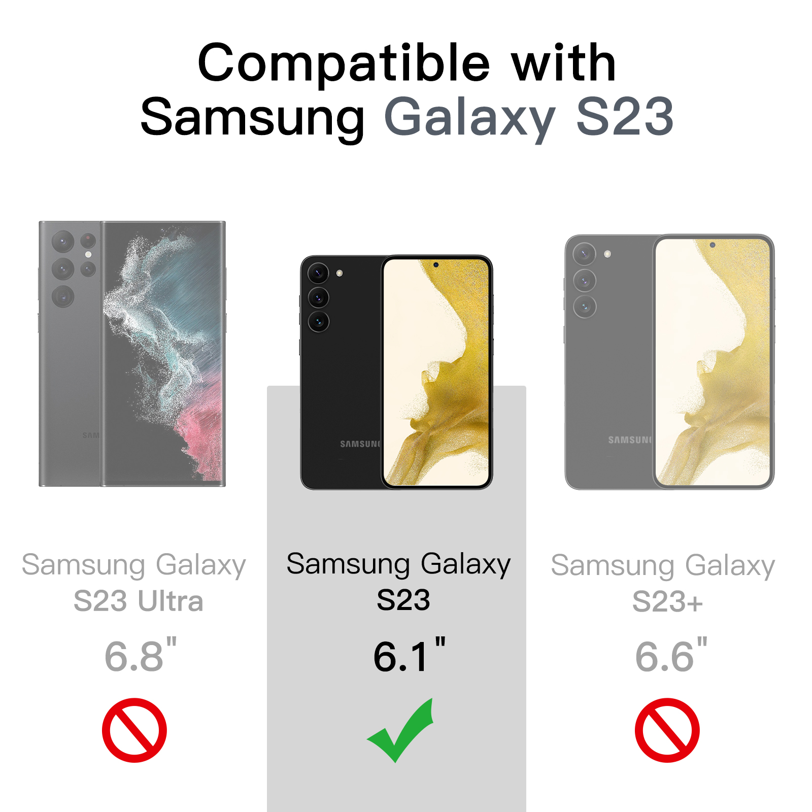 • [Compatibility] Exclusively designed for Samsung Galaxy S23 5G 6.1 inch.?NOTE: Not for Galaxy S23 Plus/ S23 Ultra.?This slim profile case does not interfere with wireless charging at all