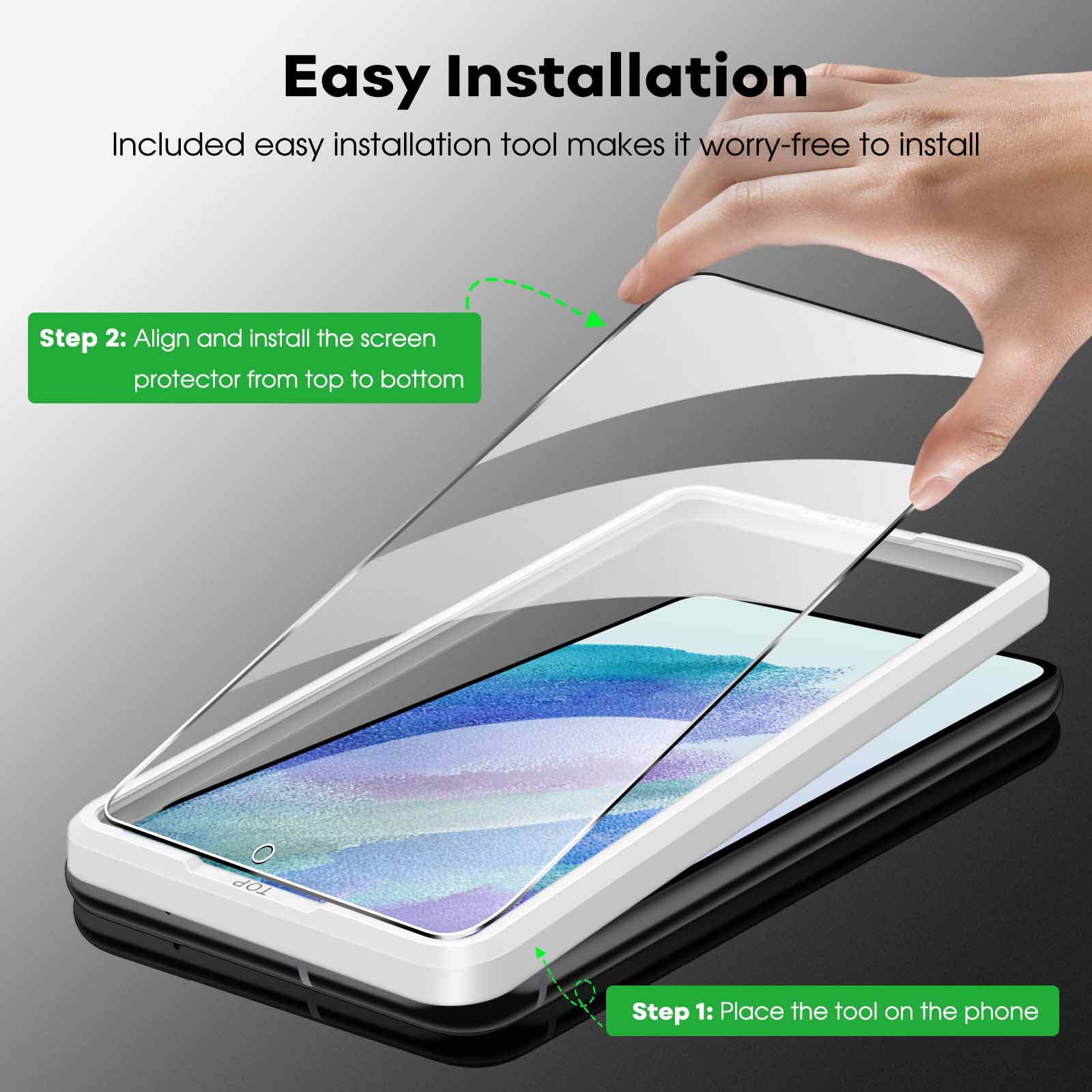 [Easy Installation] It is super easy to align and install the screen protector with the attached easy installation tool. Bubble-free and anti-fingerprints