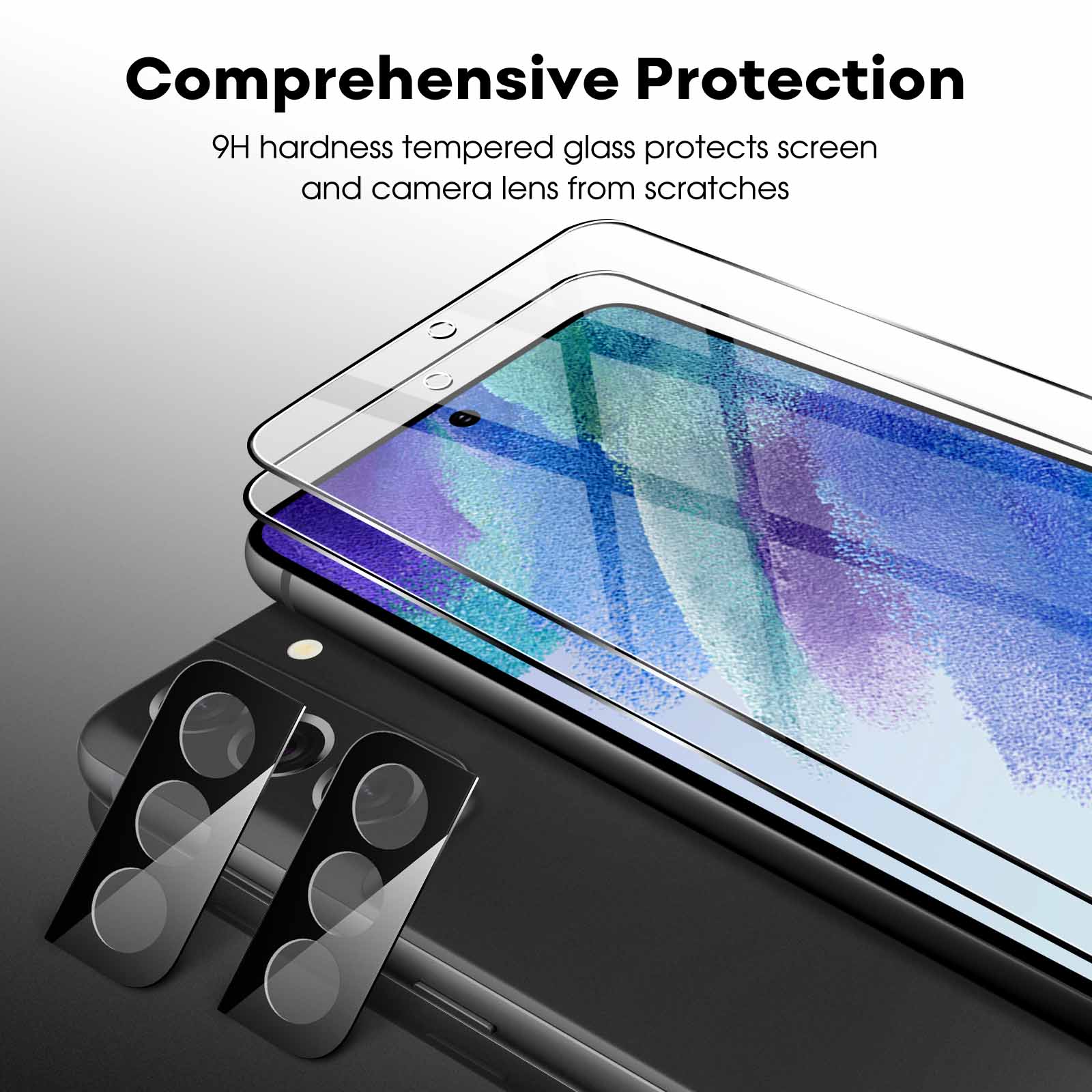[Premium Tempered Glass] Built with 9H hardness material. Both the screen protector and camera lens protector protect your screen and camera lens effectively from daily scratches, bumps or drops