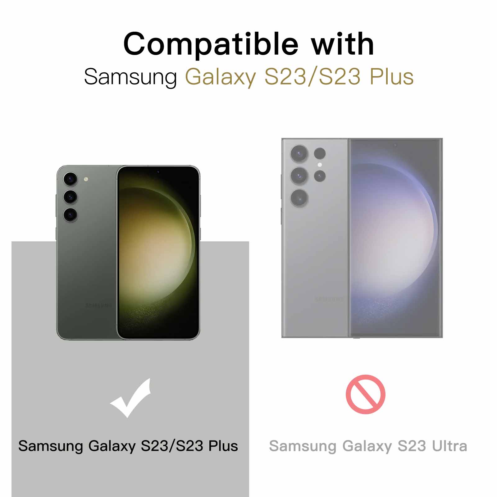 [Compatibility] Precisely fit Samsung Galaxy S23 5G 6.1-Inch / S23 Plus 5G 6.6-Inch. Seamlessly cover the camera lens and prevent dust and water. Compatible with most phone cases