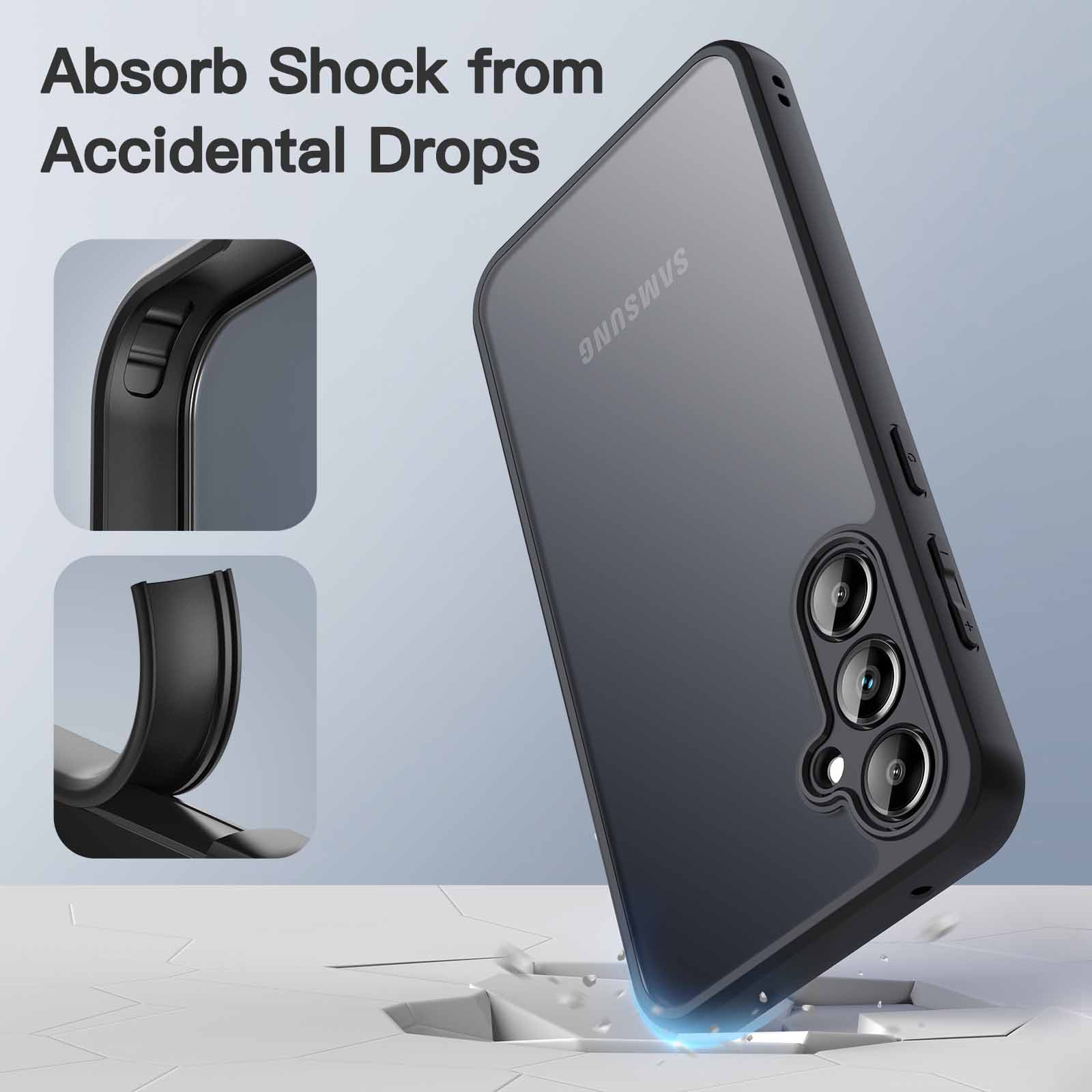 [Enhanced Shock-Absorption] Built with flexible TPU frame and hard PC back, protect your phone against shocks caused by accidental drops and bumps. More protective with reinforced shock-absorbing cornered-cushions