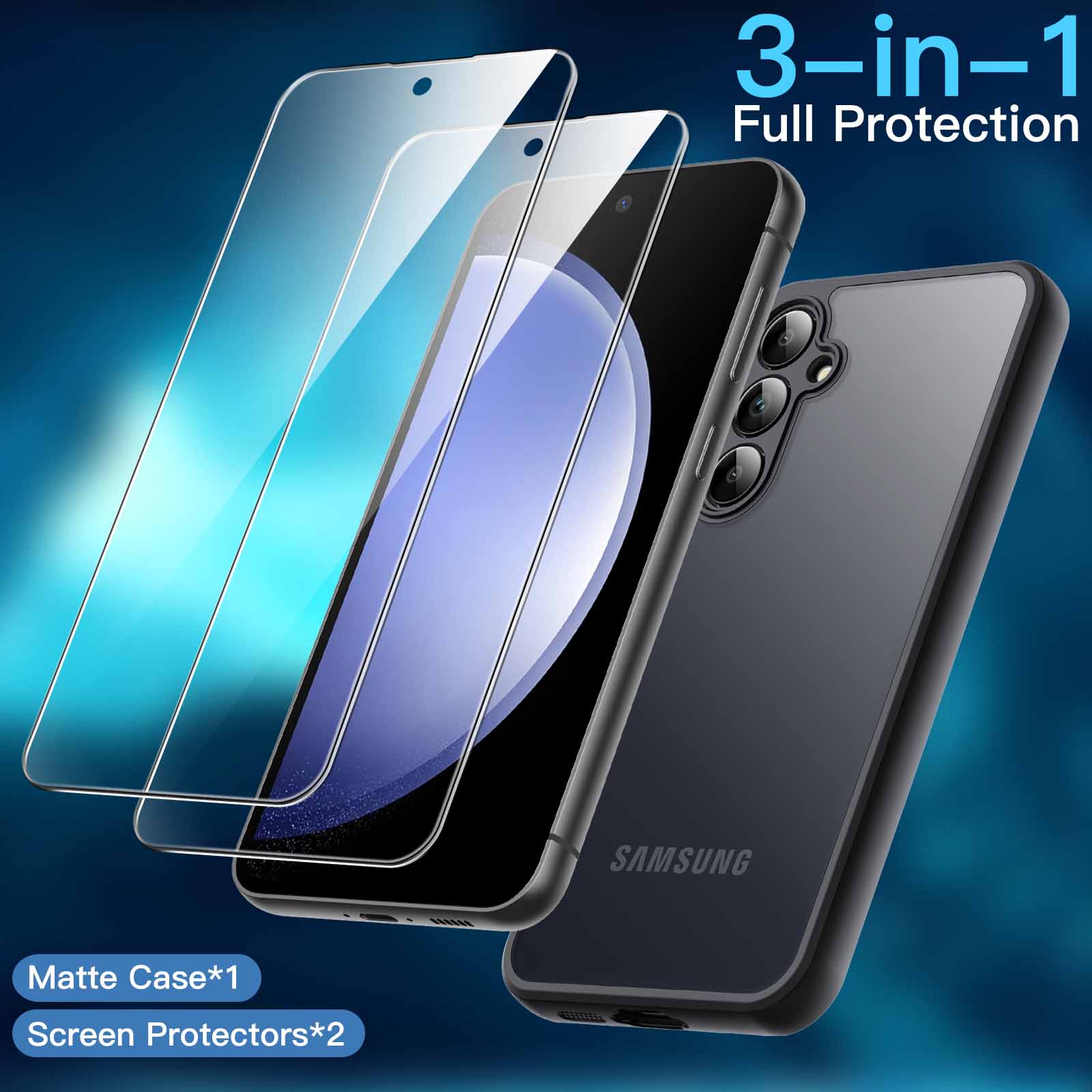 [Dual Protection] Tailor-made for Samsung Galaxy S23 FE 6.4-inch. You will receive a shockproof matte case and 2-pack tempered glass screen protectors, highly protecting your device against daily drops, bumps and scratches