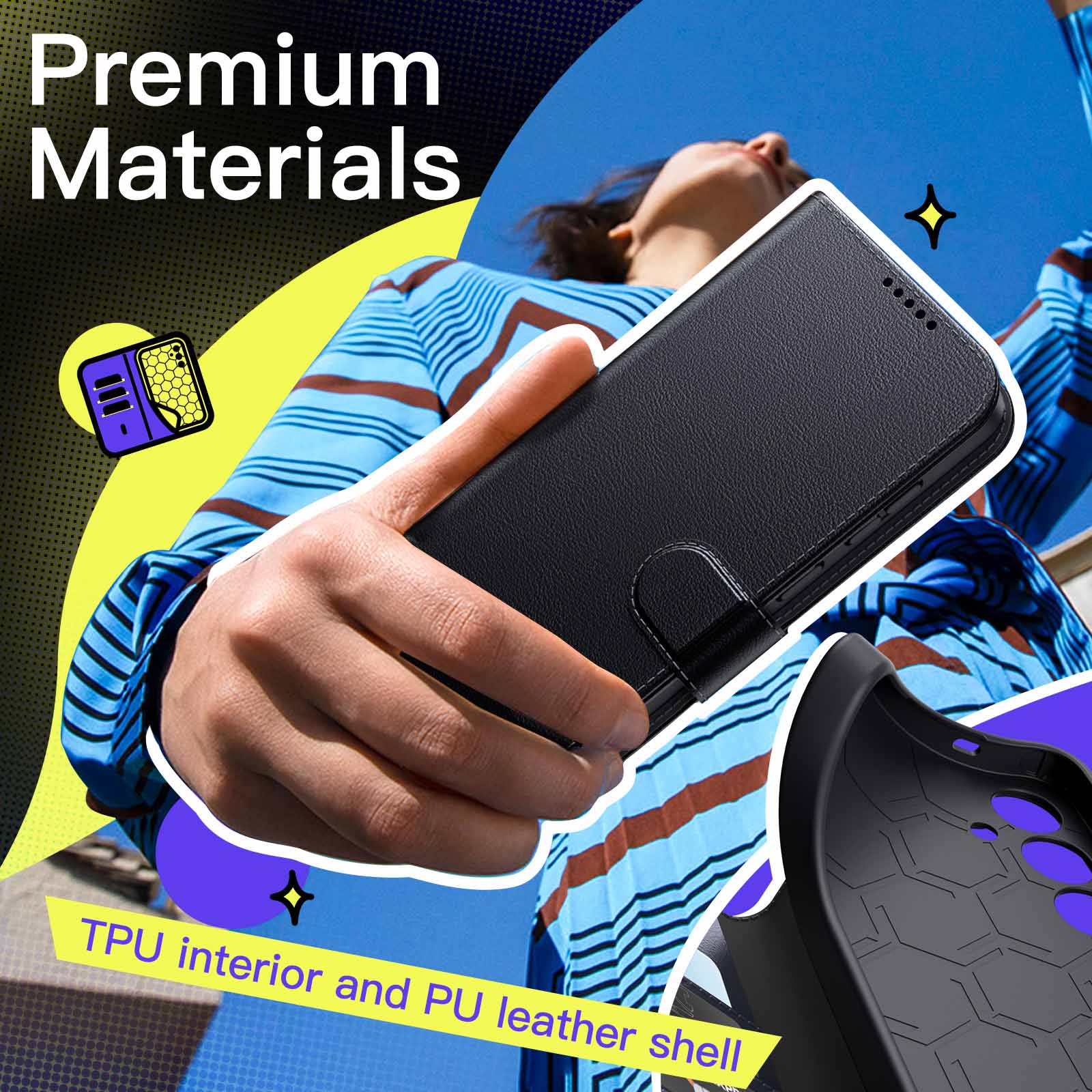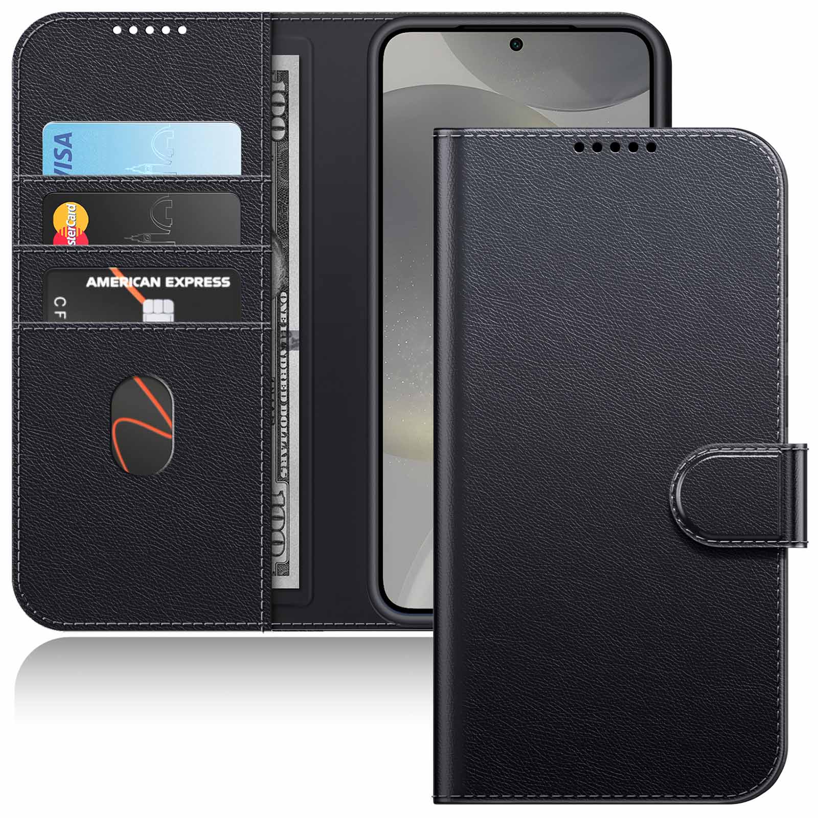 • [All-Around Protection] Designed for Samsung Galaxy S24 5G. PU leather cover and inner flexible TPU back protect your device from scratches, shocks and bumps. Premium materials ensure a comfortable grip