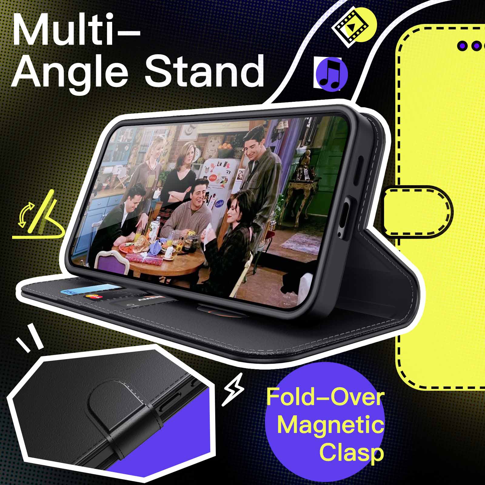 • [Keep Security] The stronger magnetic clasp holds your phone and cards in a closed position. No need to worry the cards and money will fall off. Keep your belongings secure