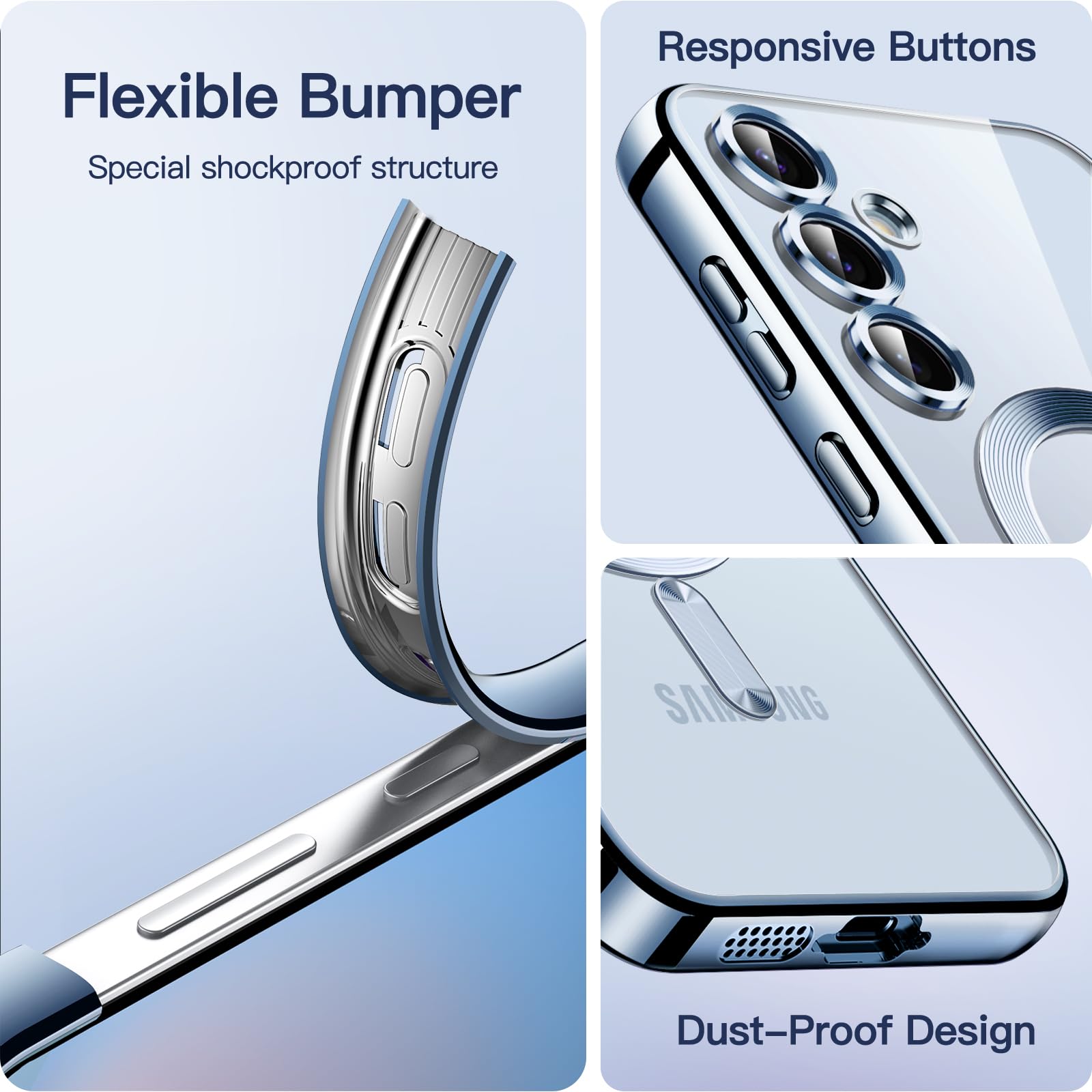 [Compatibility & Attractive] Exclusively fit for Samsung Galaxy S24 FE. NOTE: Not for Samsung Galaxy S24 / S24 Plus / S24 Ultra / S23 FE. Built with premium TPU material and electroplated frame, this see-through case keeps your phone slim, stylish and shows off its original beauty