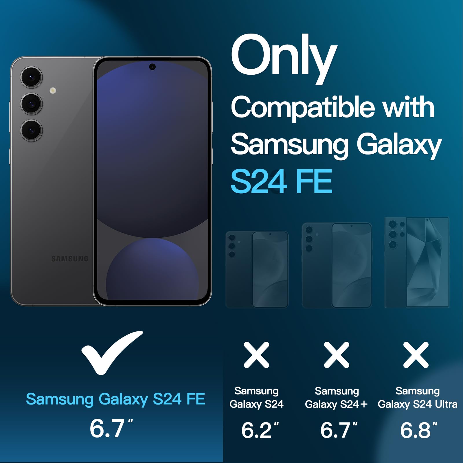 • [Compatibility] Designed for Samsung Galaxy S24 FE for great protection (NOTE: Not for Samsung Galaxy S24 / S24 Plus / S24 Ultra / S23 FE). Designed with thoughtful 2.5D curved edges, compatible with most phone cases. Please kindly check your device model before purchasing