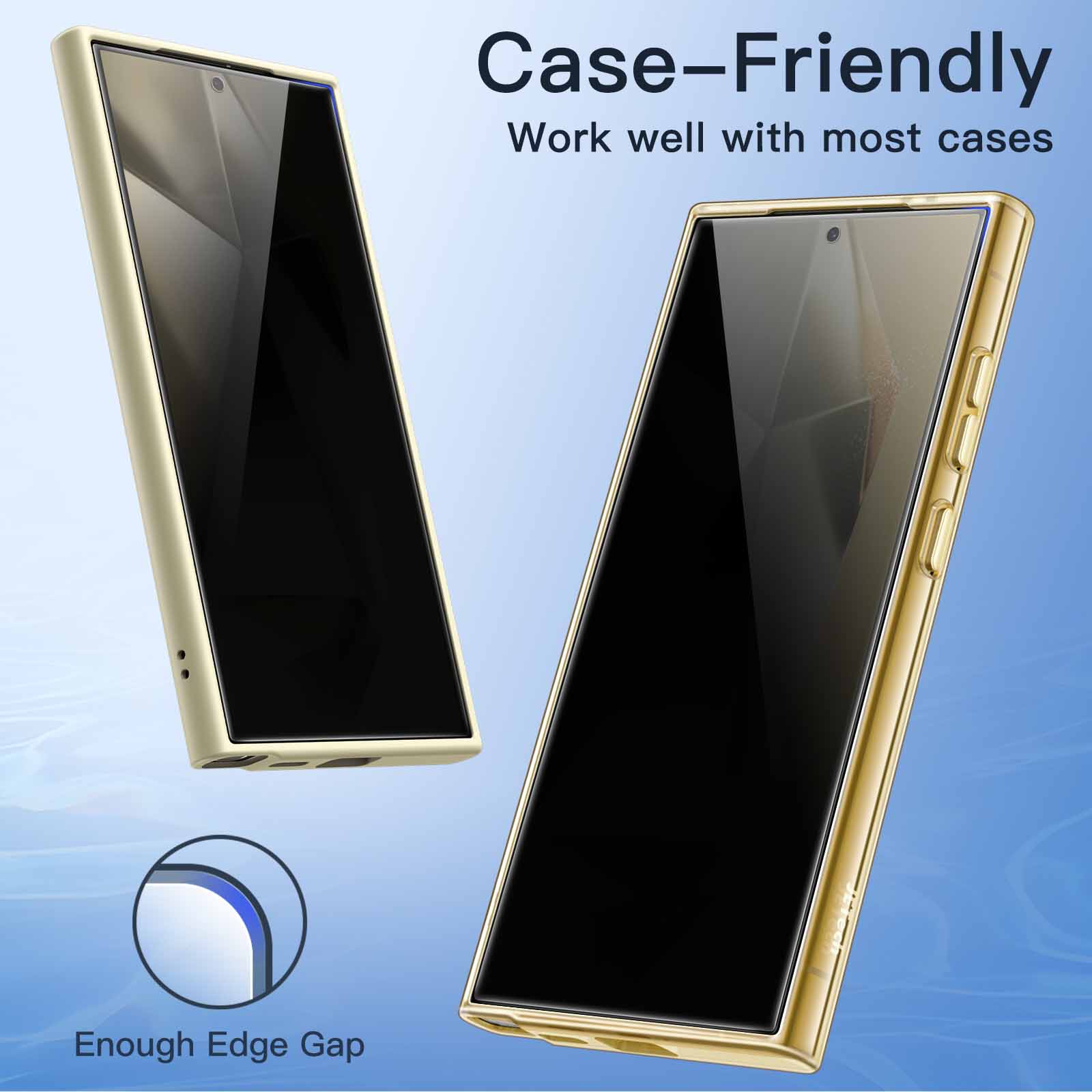 [Case-Friendly] There is enough edge space around the borders for your case to wrap around the edges of your mobile. Compatible with most phone cases