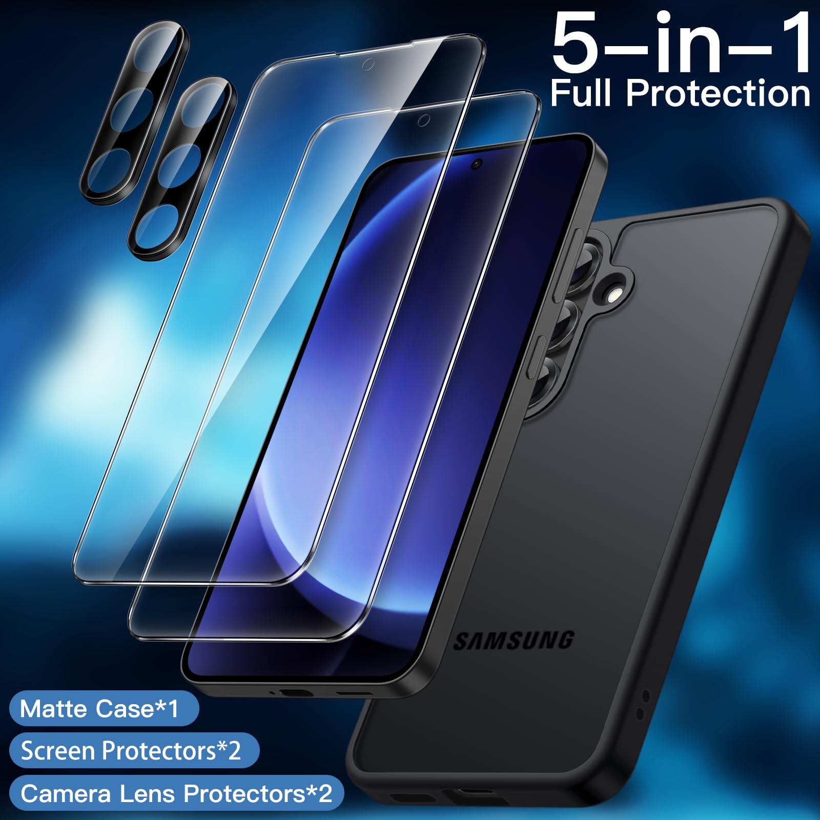 [Compatibility] Exclusively designed for Samsung Galaxy S25 5G. NOTE: Not for Samsung Galaxy S25 Plus / S25 Ultra. This protective matte case, together with 2 pack screen protectors and 2 pack camera lens protectors, provides a 360 degree all-around protection for your phone