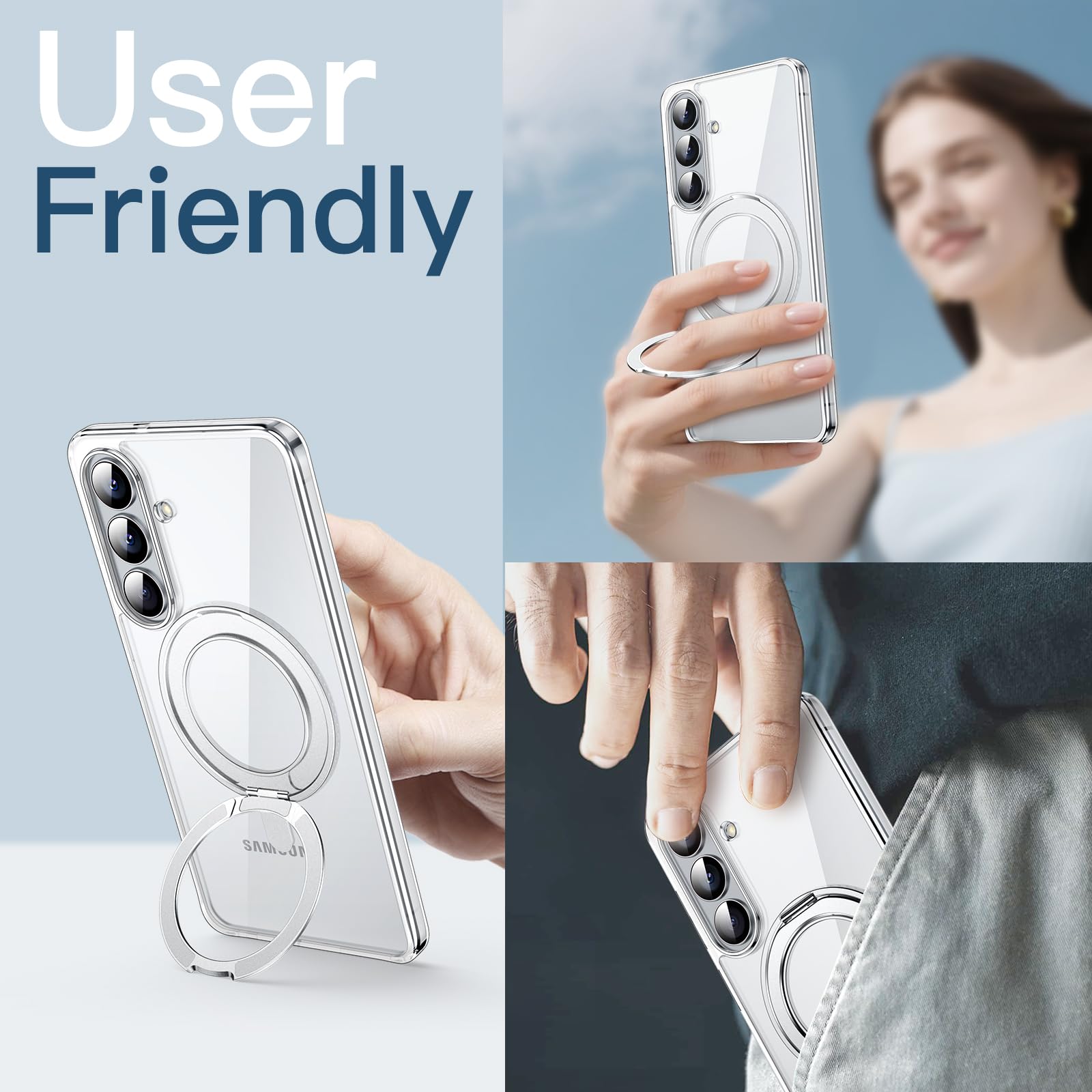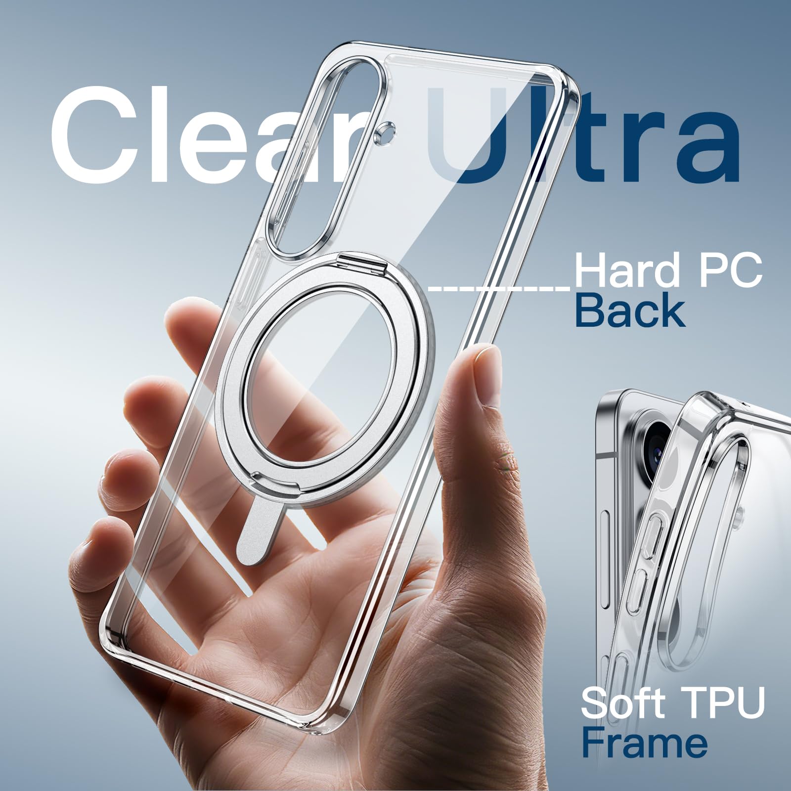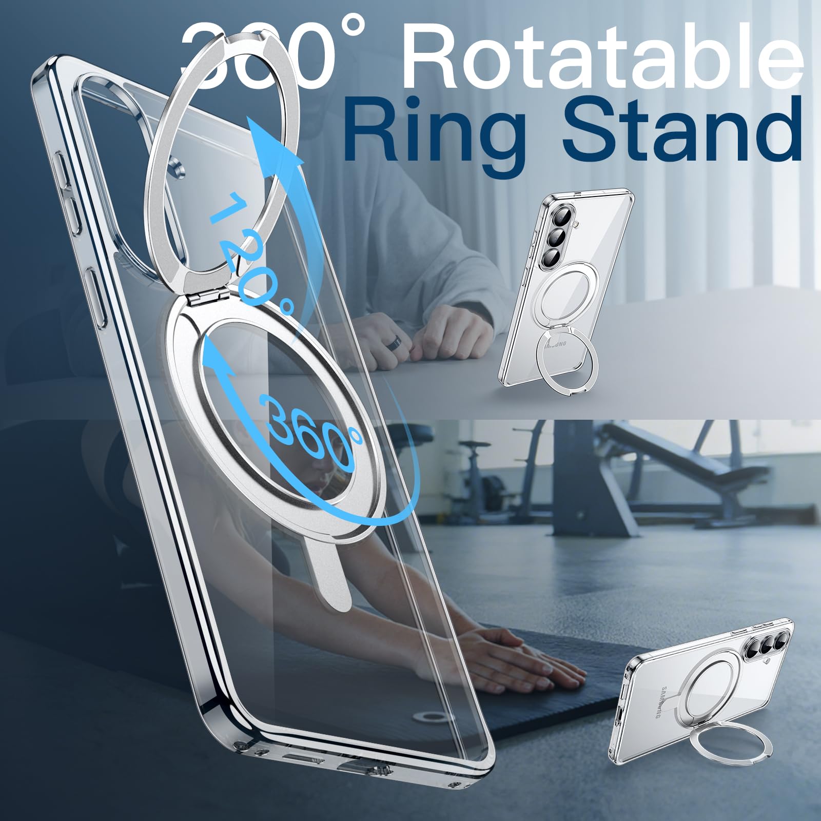 JETech 360 Degree Rotatable Ring Case for Samsung Galaxy S26, Compatible with MagSafe, Clear Shockproof Phone Cover with Stand & Ring Holder