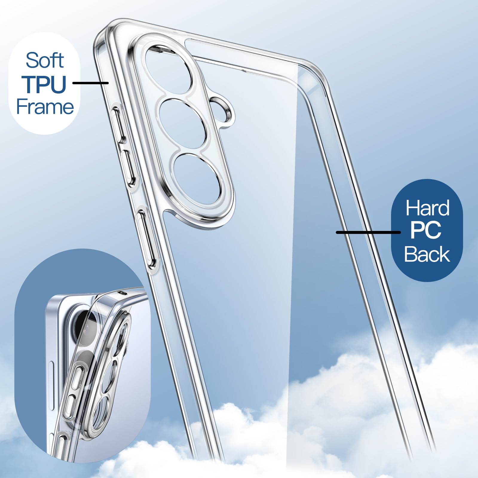 [Anti-Yellowing] The case back is completely crystal clear, showcasing your phone’s original beauty and logo. Resist yellowing over time and maintain long-lasting clarity