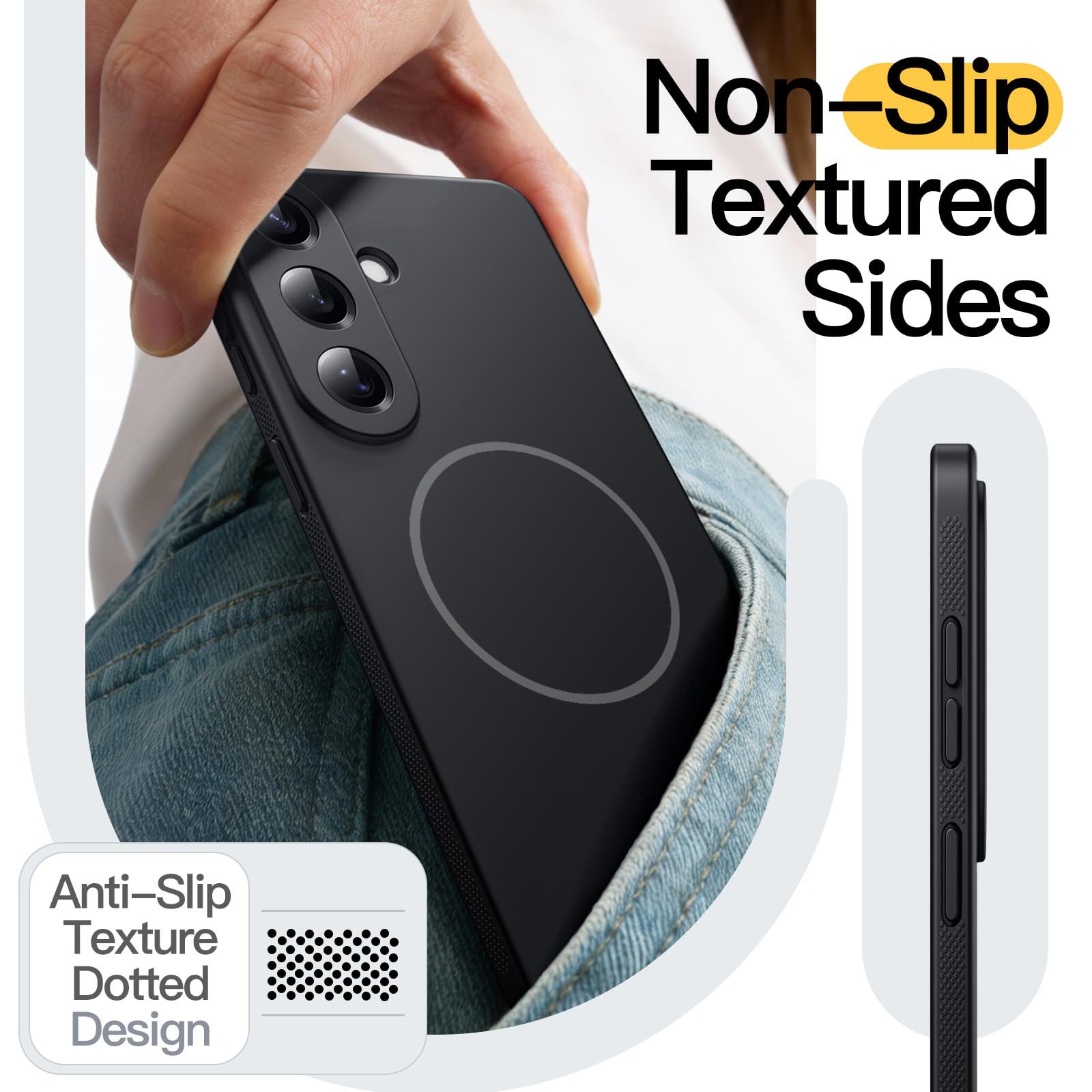 • [Anti-Slip Design] The sides feature an anti-slip dotted striped texture, which not only provides a comfortable grip but also effectively prevents the phone from slipping