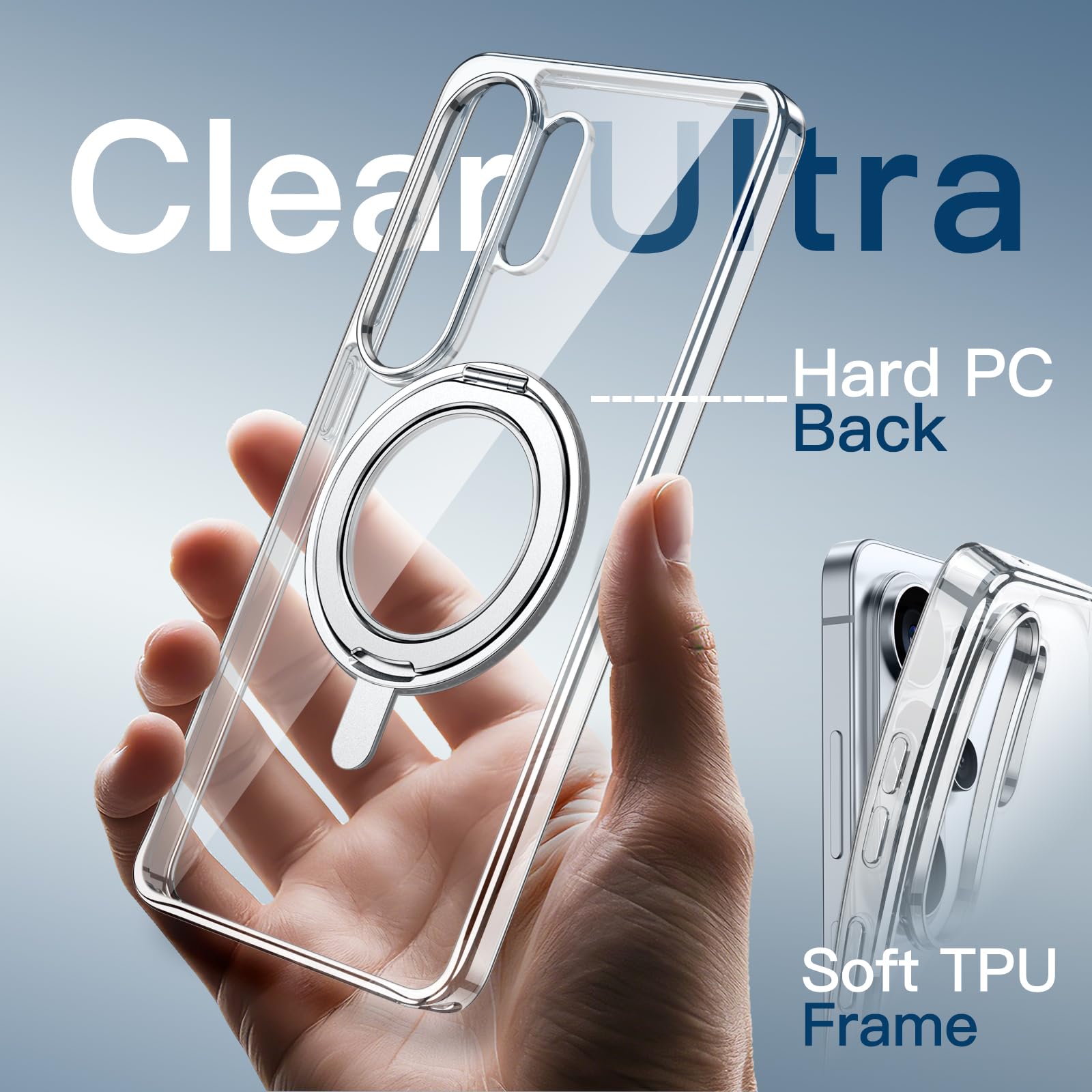 • [Clear Back] The crystal-clear back perfectly showcases your phone’s original beauty and logo, resisting yellowing over time to maintain lasting clarity