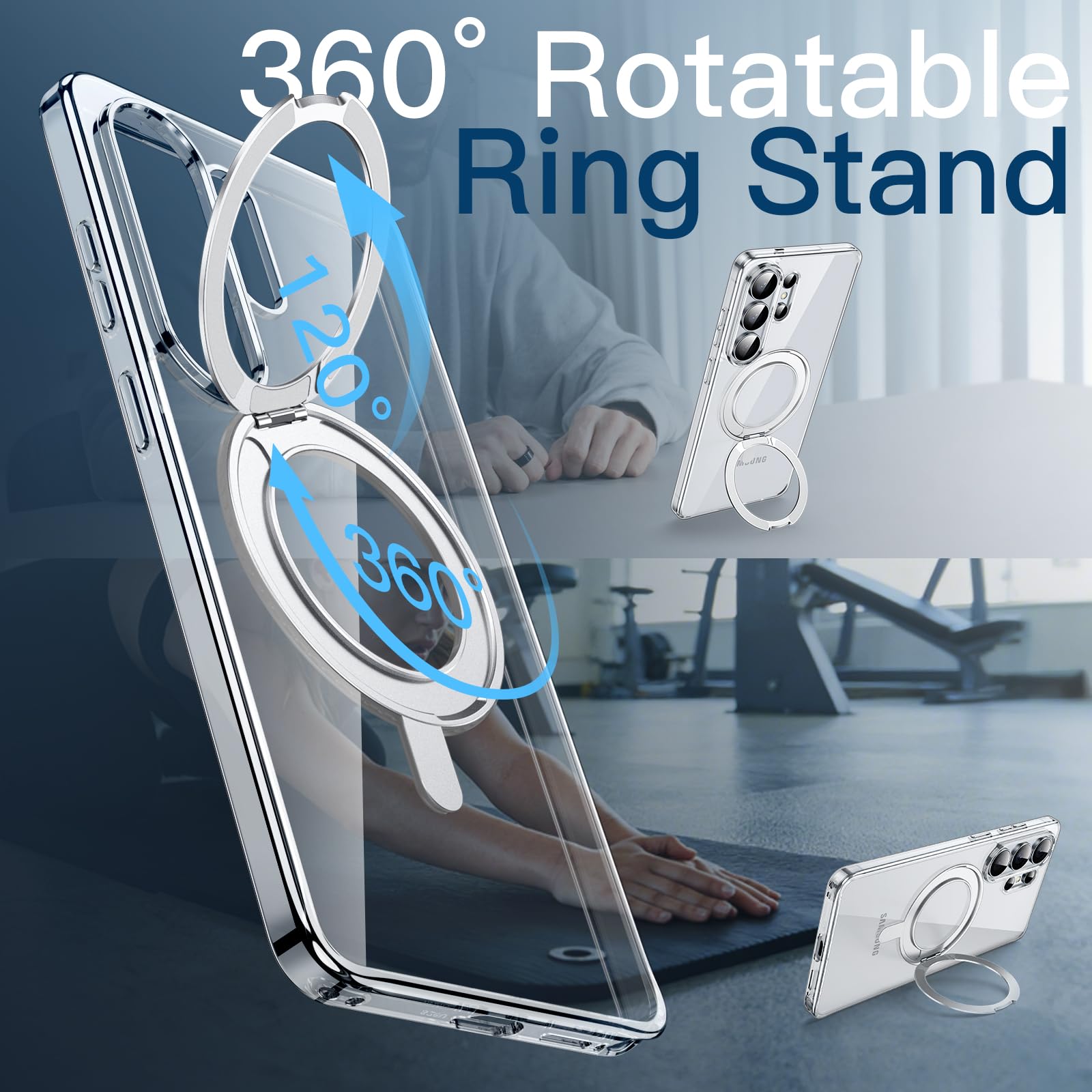 • [360 Degree Rotatable Ring Stand] The case has 360 degree rotatable ring stand that prop up various vertical and horizontal positions and you can adjust the angle as per your daily needs