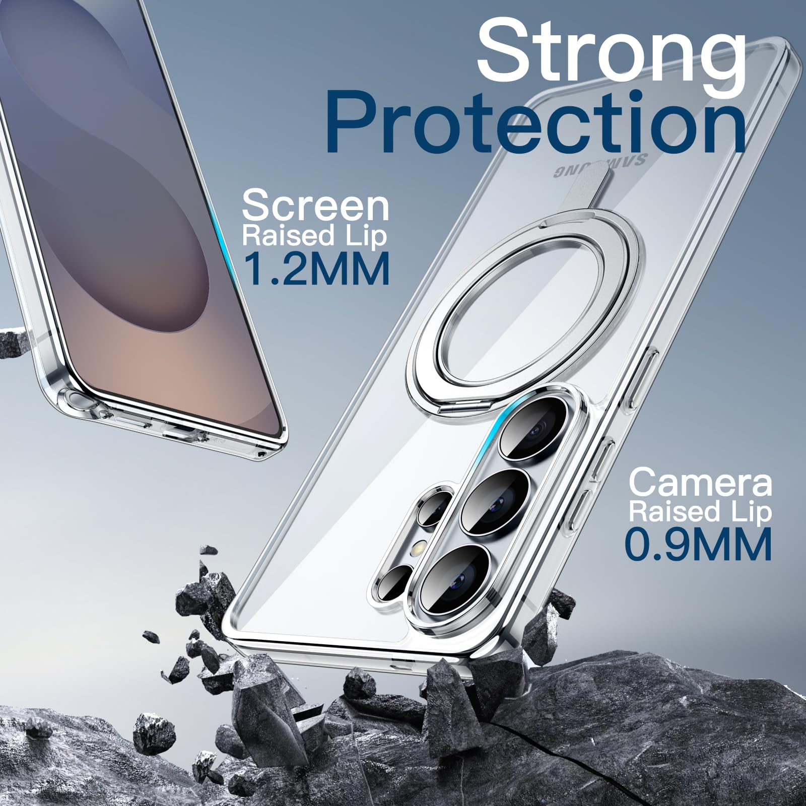 • [Enhanced Protection & Superior Durability] The raised edges effectively protect the screen and camera during daily drops and bumps. Meanwhile, the rotatable ring stand undergoes over 3,000 open/close tests throughout the manufacturing process to provide you with quality assurance