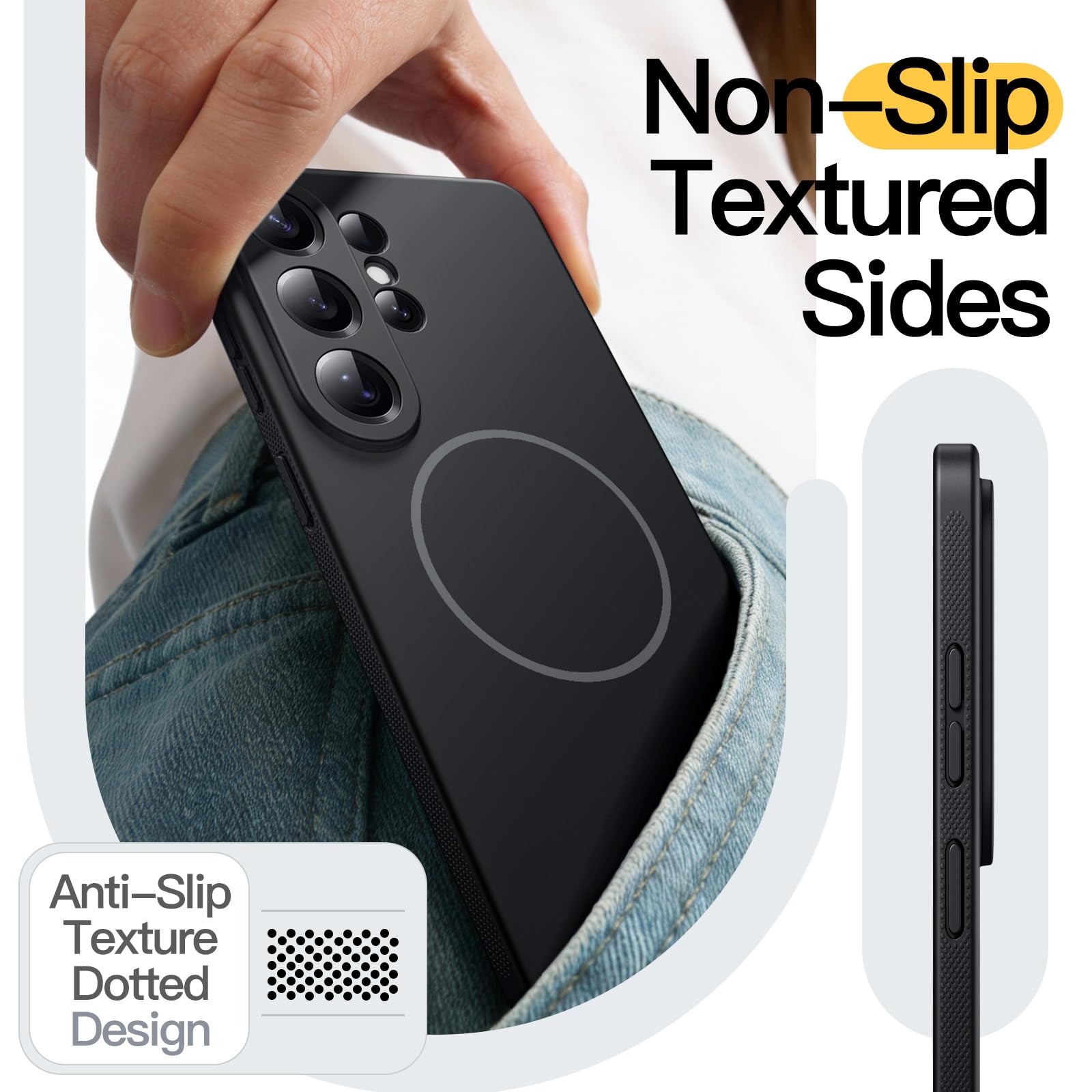 • [Anti-Slip Design] The sides feature an anti-slip dotted striped texture, which not only provides a comfortable grip but also effectively prevents the phone from slipping