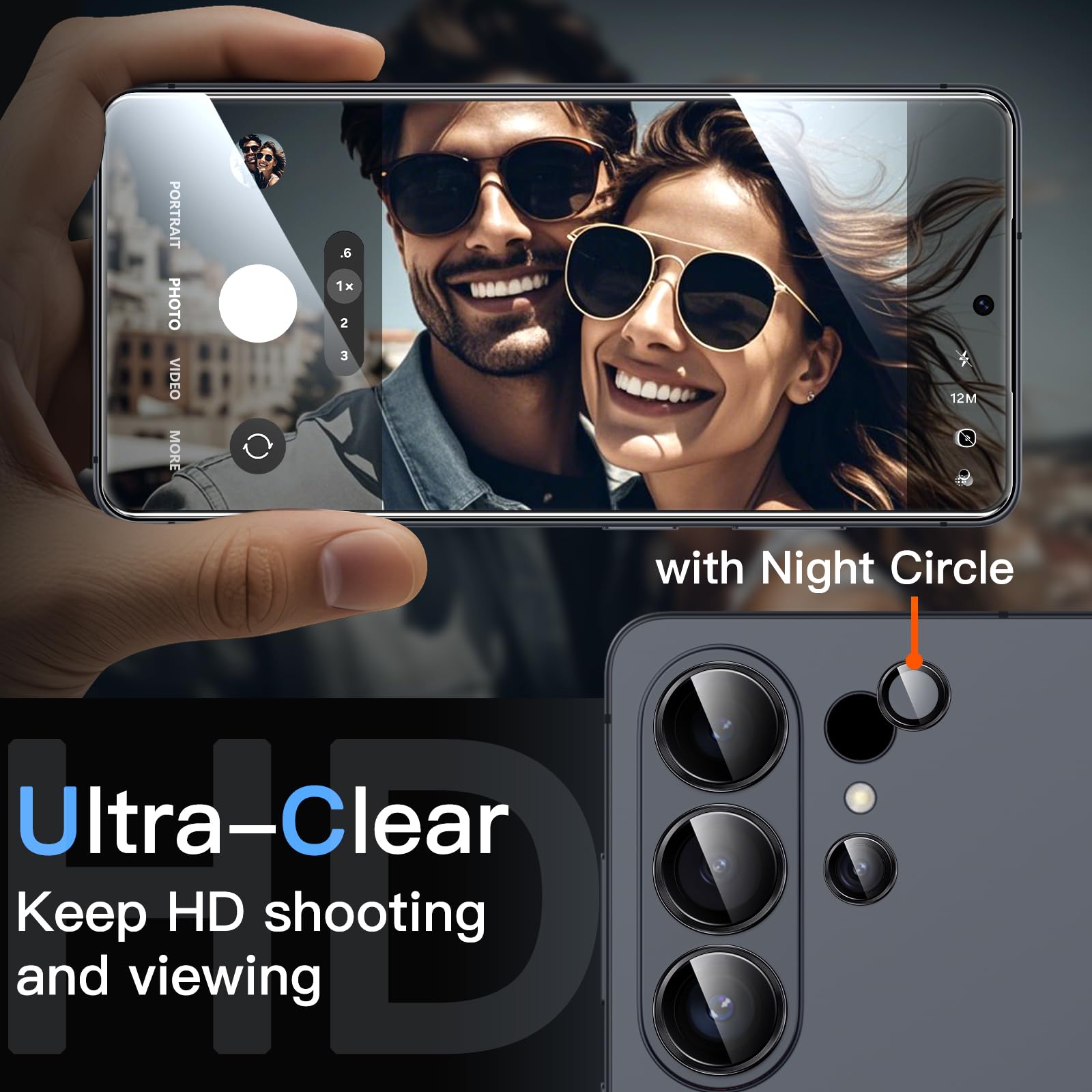 [High Definition] The glass lens protector with 99.99% light transmittance ensures the original quality of photos and videos. Moreover, the oleophobic coating effectively keeps fingerprints, sweat and oil from gathering