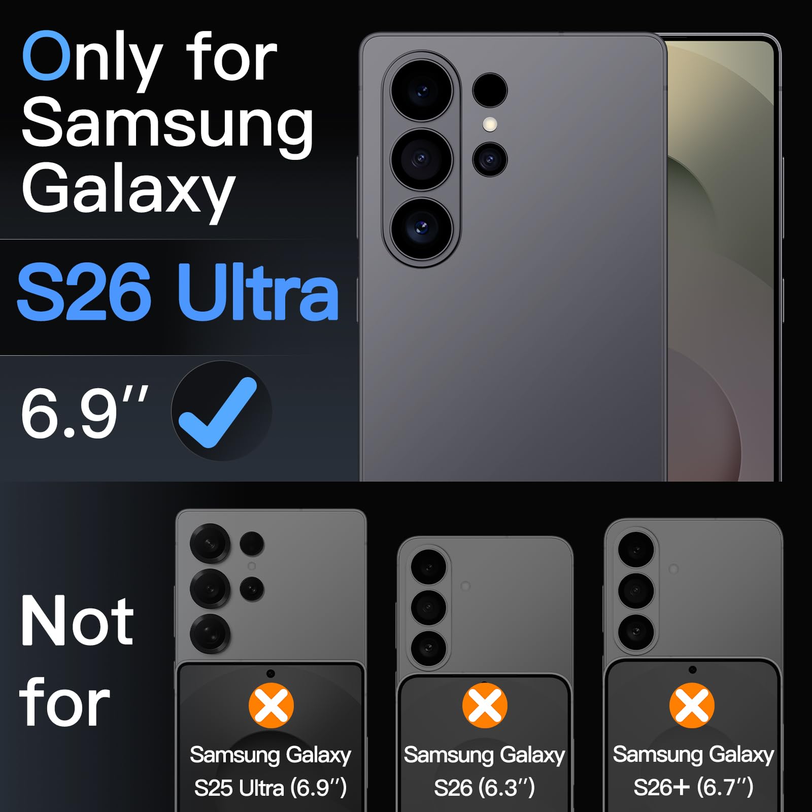 [Compatibility] Precisely fit for Samsung Galaxy S26 Ultra. NOTE: Not for Samsung Galaxy S25 Ultra / S26 / S26 / S26 Plus. Provides seamless camera lens coverage, shielding against dust and water. Compatible with most phone cases