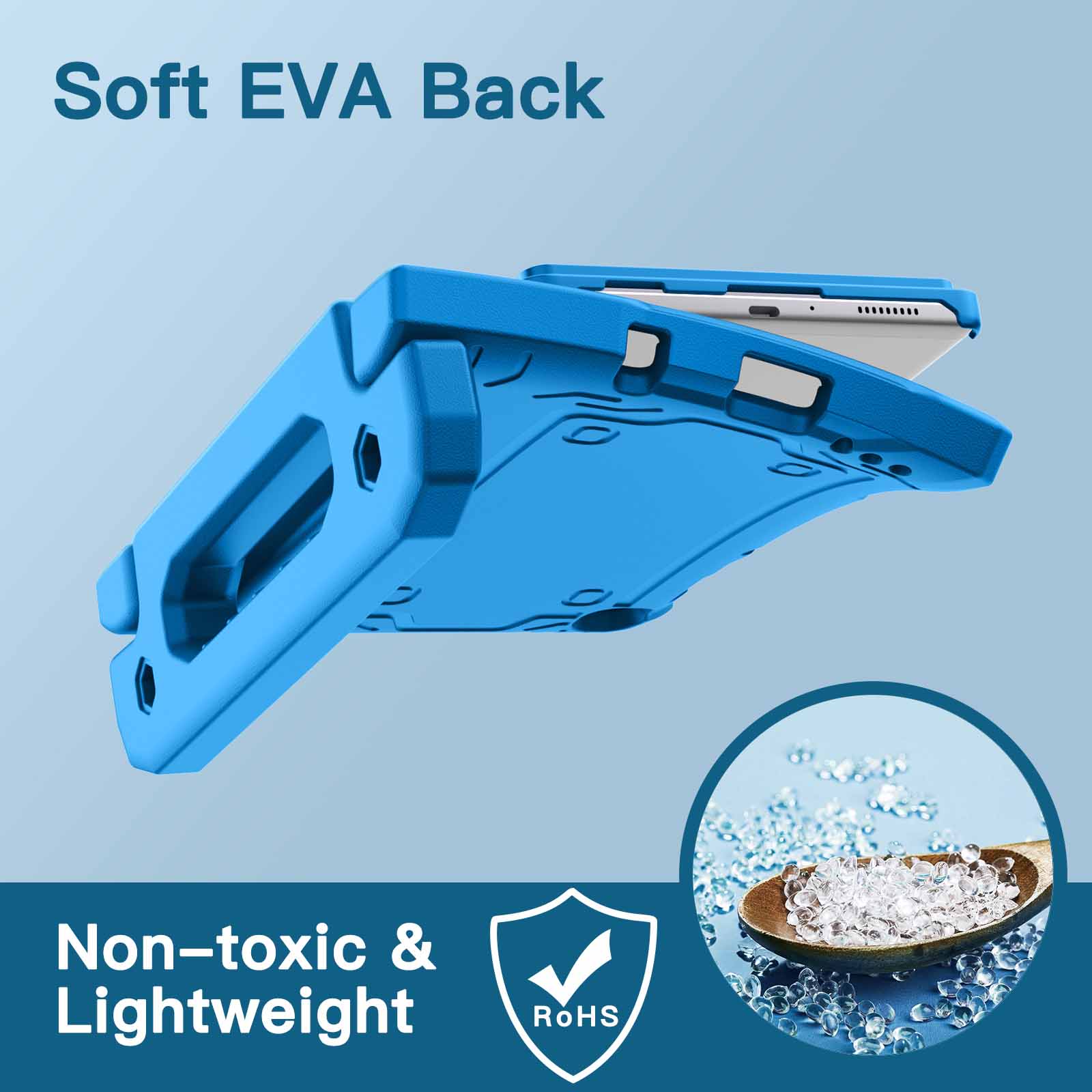 [Versatile Stand] Designed with a kid-friendly handle with anti-slip texture. It is easy for kids to carry around and fold it back to convert into a sturdy stand for hands-free viewing and comfortable typing