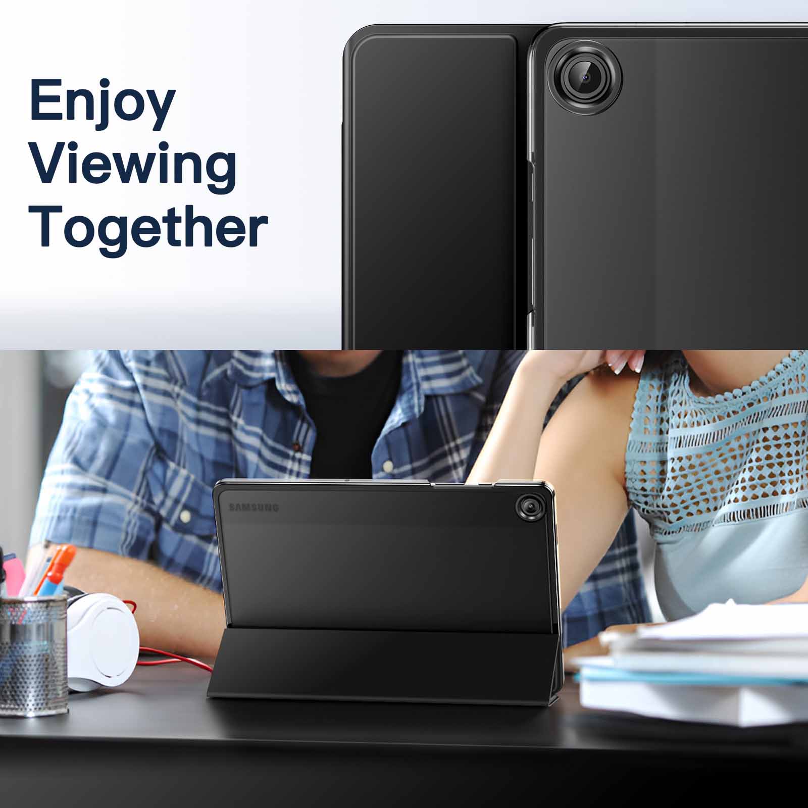 [Tri-Fold Stand Cover] The front cover can be folded into a stand to support your tablet in two different positions for viewing and typing