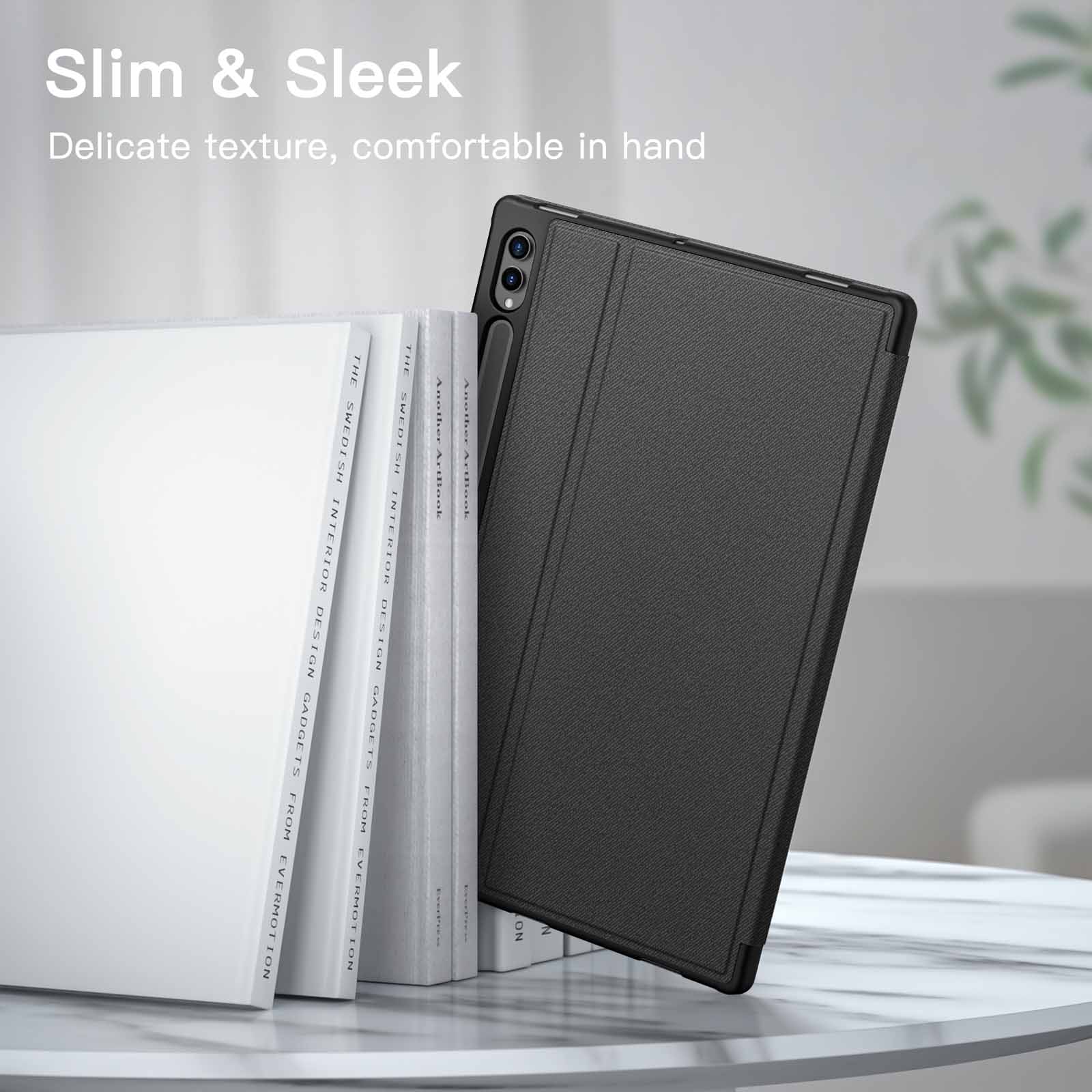 This JETech case is a perfect fit for my Galaxy Tab S10 Ultra. The slim design doesn’t add much bulk. yet it feels sturdy and protective. I particularly appreciate the built-in S Pen holder. which keeps my pen secure and easily accessible. The multi-angle stand is also very useful for watching videos or working..The auto wake/sleep function works flawlessly. and all the cutouts are precise. The PU leather feels nice. and the TPU material provides good shock absorption. It’s a well-designed case that offers excellent protection and functionality.