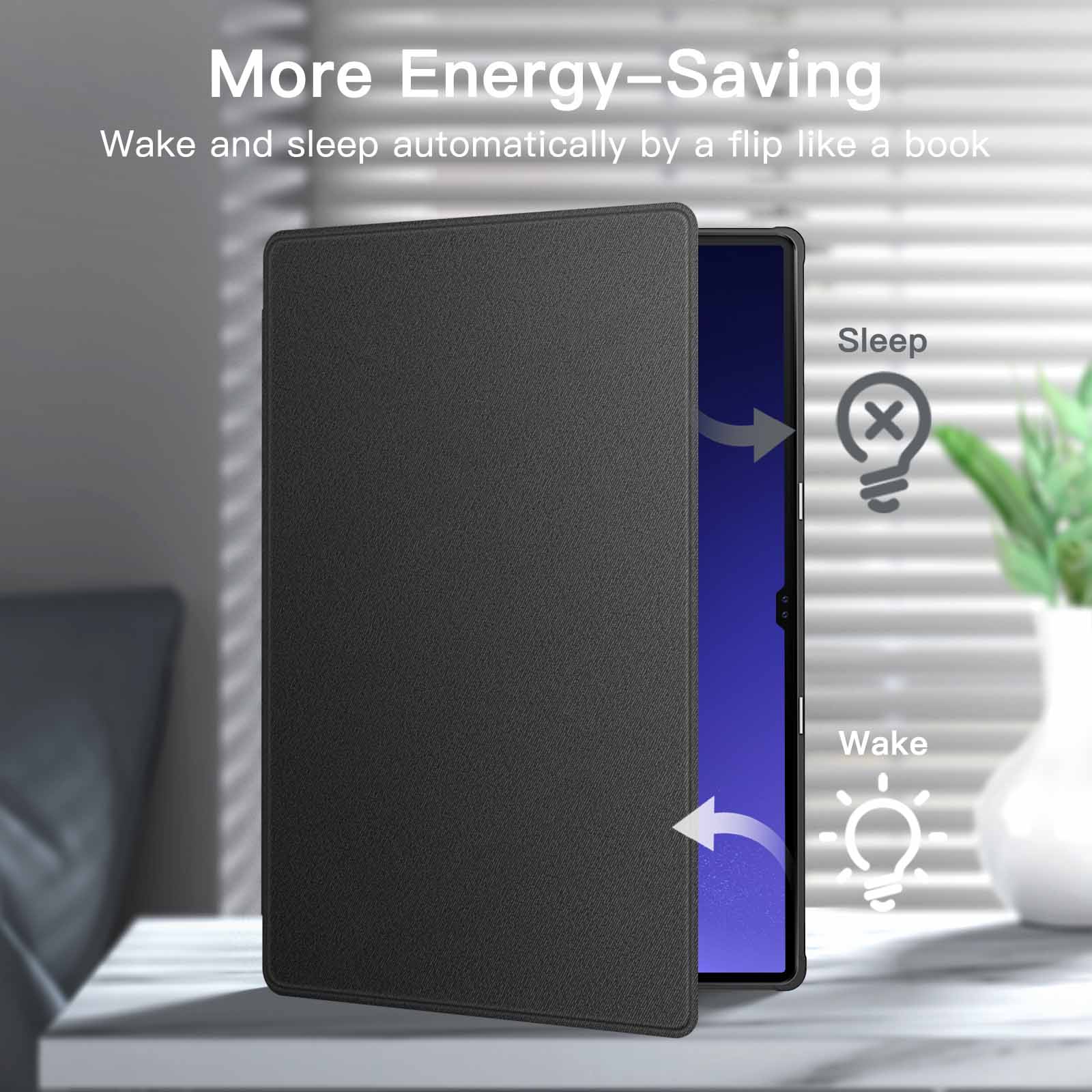 [Auto Wake/Sleep] Built-in strong magnet automatically wakes up your tablet and puts it to sleep just by a flip like a book. In addition, allow easy open and secure close