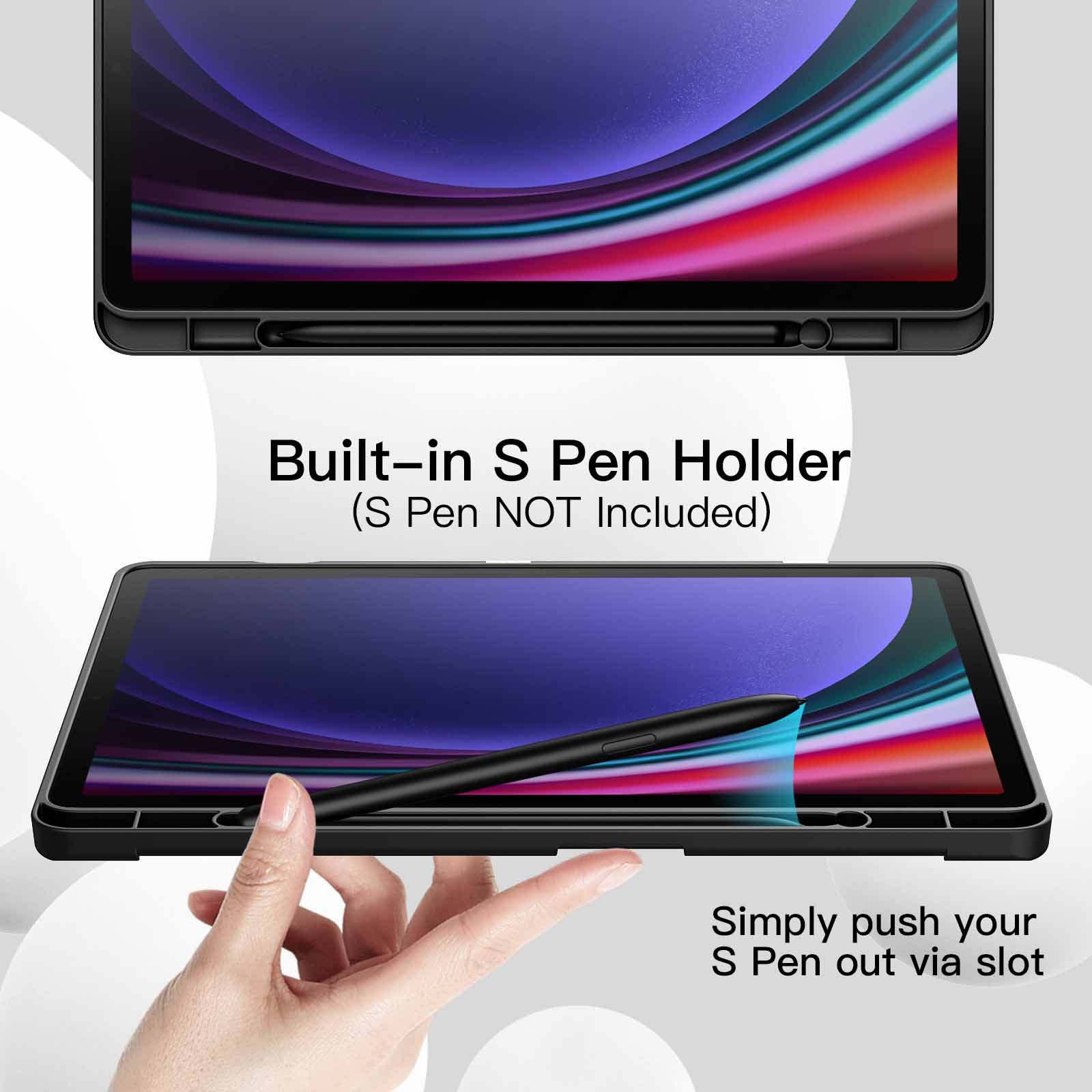 [Built-for S Pen] You can pair and charge your S Pen magnetically through the back slot. Also there is a built-in pen holder for securely store and grab your Pen easily (Note: S Pen Not Included)