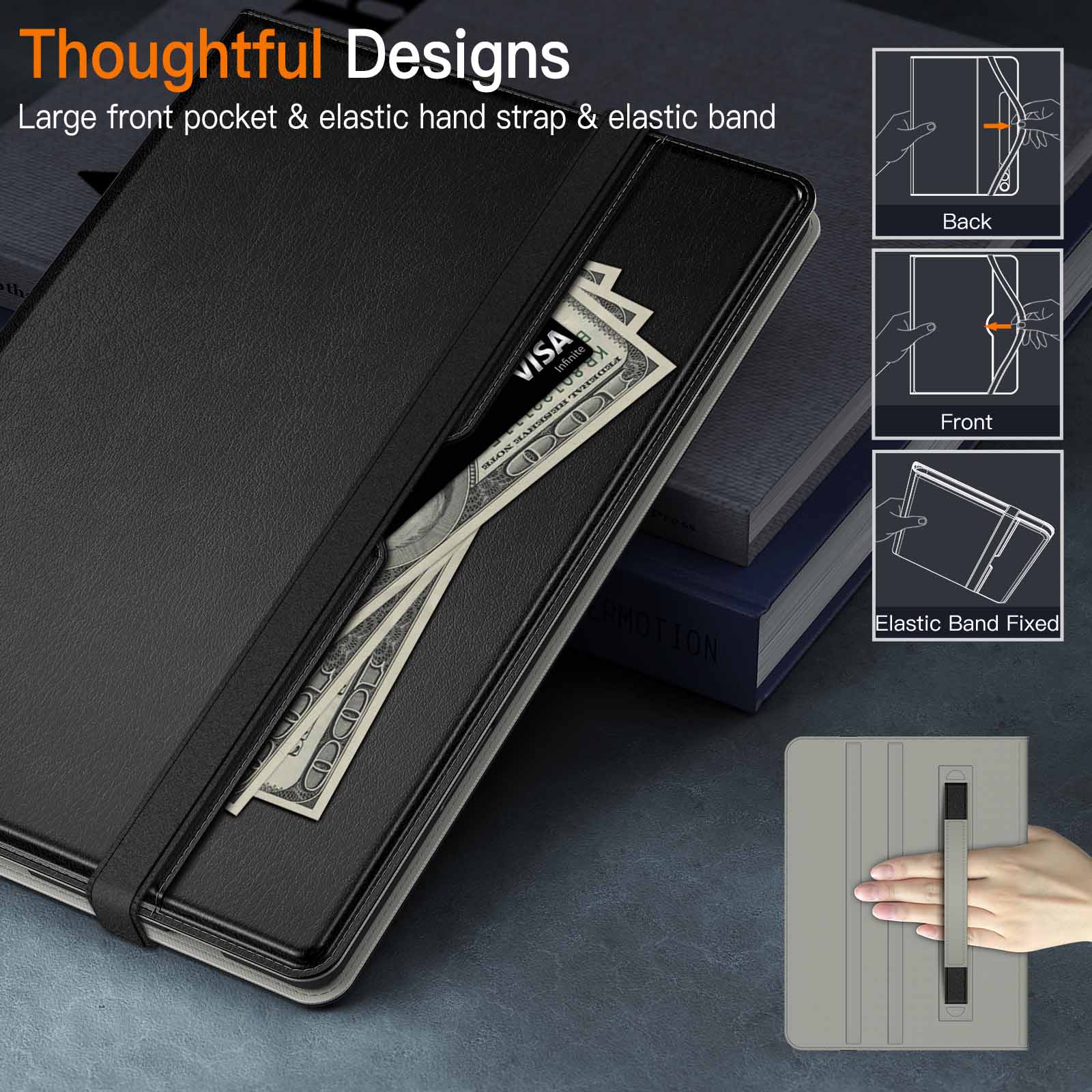 [Multi-Functional] A large front pocket to store cards, cash, notes and so on. Also come with an exterior elastic strap to fix your tablet tightly to the case, and the adjustable inner hand strap enhances the grip of your device