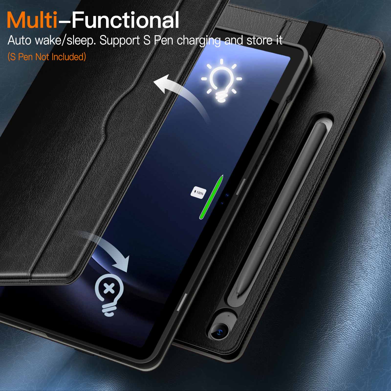 [Designs for S Pen] You can pair and charge your S Pen magnetically through the back slot. Also there is a built-in pen holder for securely store and grab your S Pen easily (Note: S Pen Not Included)