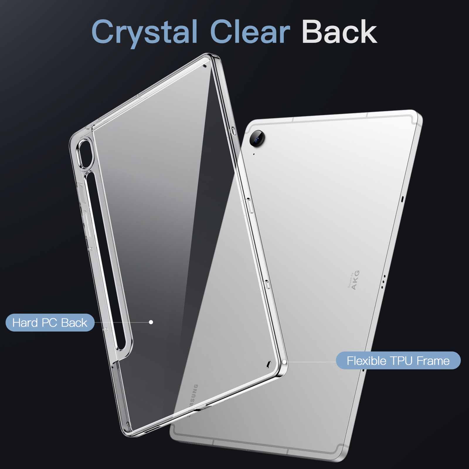 [Hybrid Protection] Built with flexible TPU frame as well as hard PC back, the transparent tablet cover protects your device against daily scratches and shocks