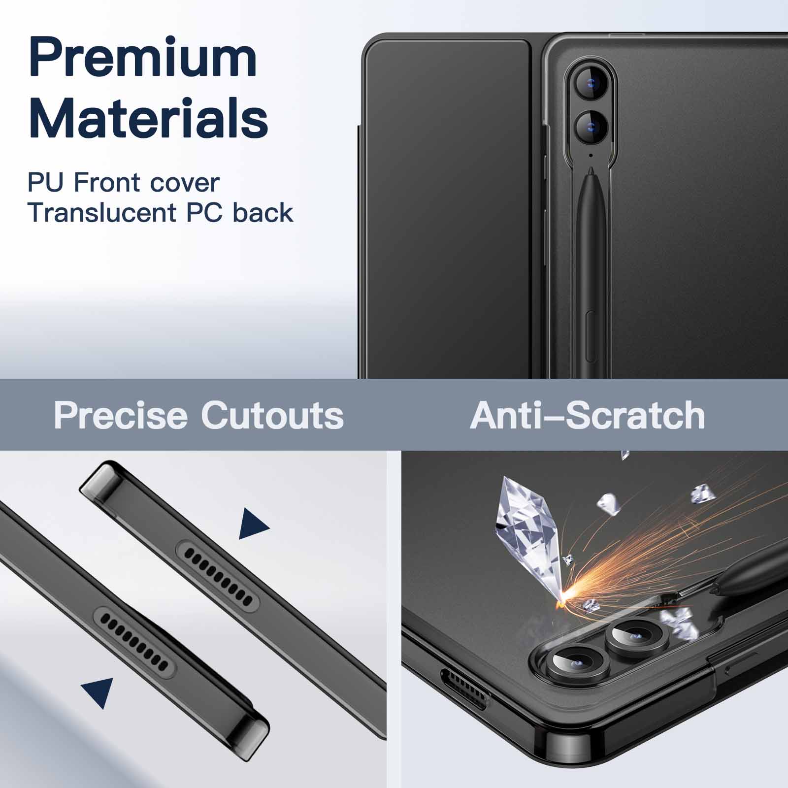 [Premium Materials] Built with a hard PC back and a quality PU front cover, providing necessary protection against daily drops and scratches. The translucent back shows off the original outline of your device, and highly resists fingerprints and oil smudges